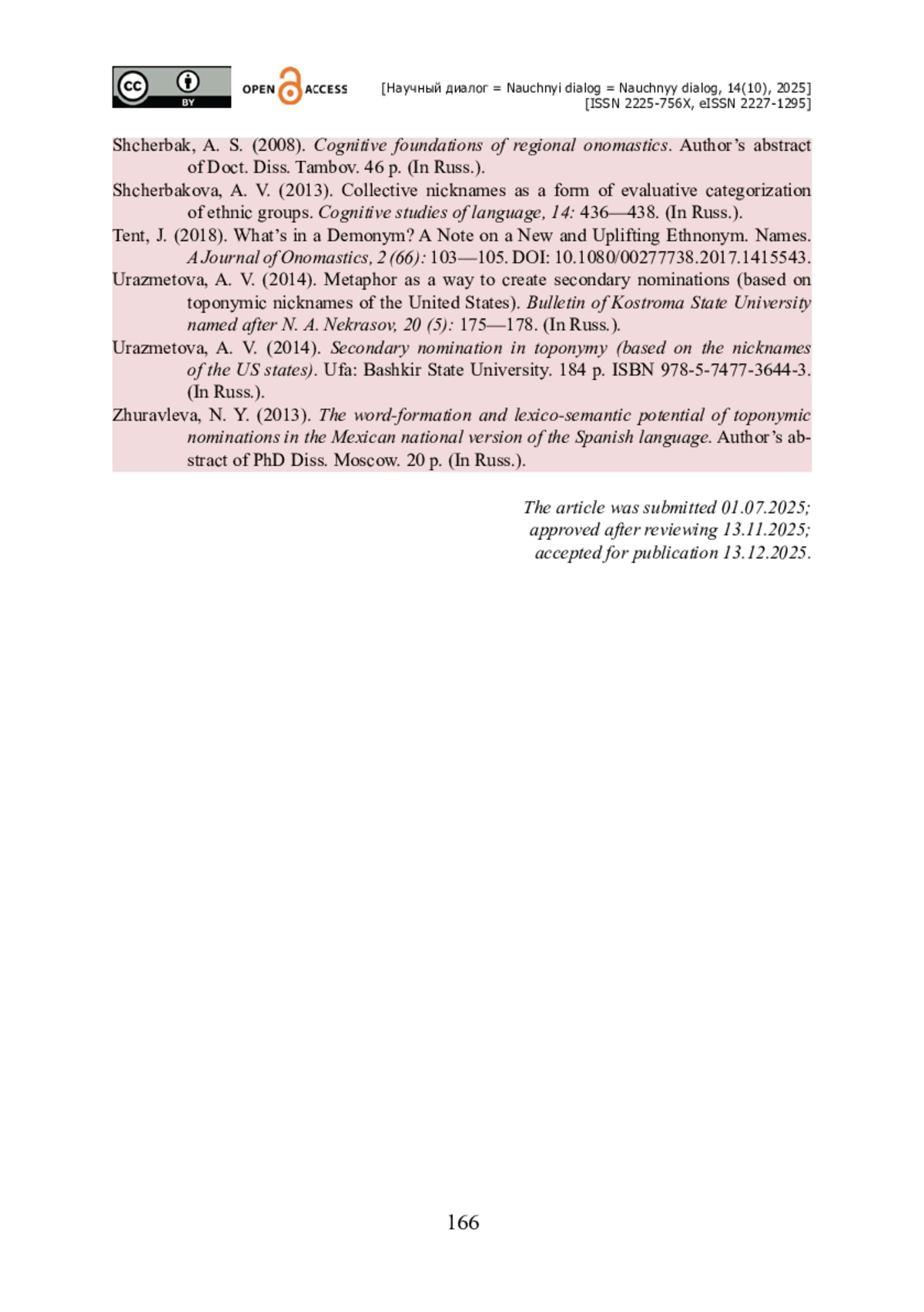16. Уразметова А. В. Метафора как способ создания вторичных номинаций (на материале топонимических прозвищ штатов США) / А. В. Уразметова // Вестник Костромского государственного университета им. Н. А. Некрасова. - 2014. - Т. 20. - № 5. - С. 175-178.
