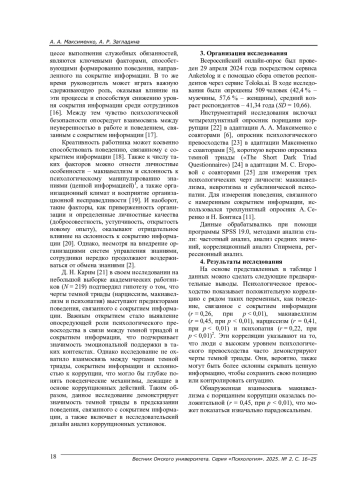 Поведение, связанное с намеренным сокрытием информации (knowledge hiding behavior), вызывает растущую обеспокоенность в организациях по всему миру [1; 2]. Зачастую оно связано с подверженностью коррупции, косвенно указывая на низкие моральные стандарты и отсутствие комплаенс-подразделений в компаниях. В психологии коррупции [3; 4] активно изучаются как мотивационные факторы [5], так и личностные черты [6], способствующие развитию коррупционных намерений и неэтичного поведения [7].