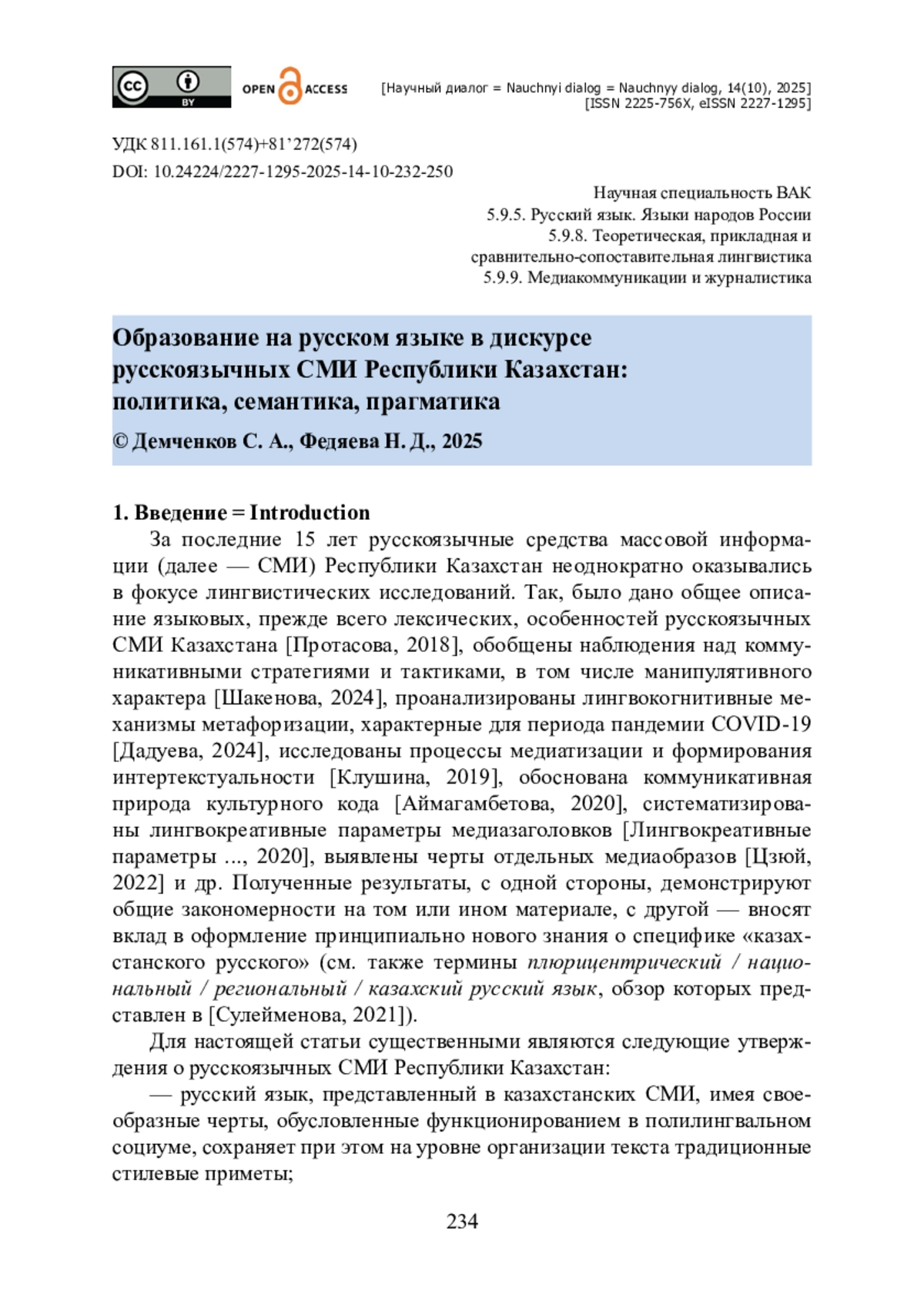 7. Протасова Е. Ю. Особенности языка русскоязычных СМИ Казахстана / Е. Ю. Протасова, А. Н. Алишариева, Ж. К. Ибраева // Уральский филологический вестник. Серия : Язык. Система. Личность : Лингвистика креатива. - 2018. - № 2. - С. 384-399.