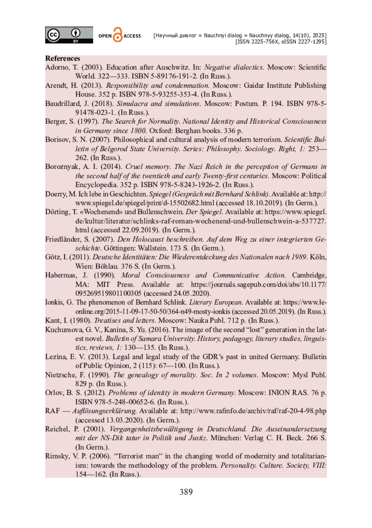 21. Habermas J. Moral Consciousness and Communicative Action [Electronic resource] / J. Habermas. - Cambridge, MA : MIT Press, 1990. - Access mode: https://journals.sagepub.com/doi/abs/10.1177/095269519801100305 (accessed 24.05.2020).