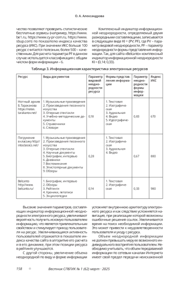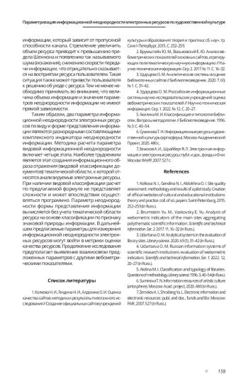 1. Колкова Н. И., Гендина Н. И., Алдохина О. И. Оценка качества сайтов: методика и результаты пилотажного исследования // Создание официальных сайтов учреждений культуры и образования: теория и практика: сб. науч. тр. Санкт-Петербург, 2015. С. 252-259. EDN: YMTOZV