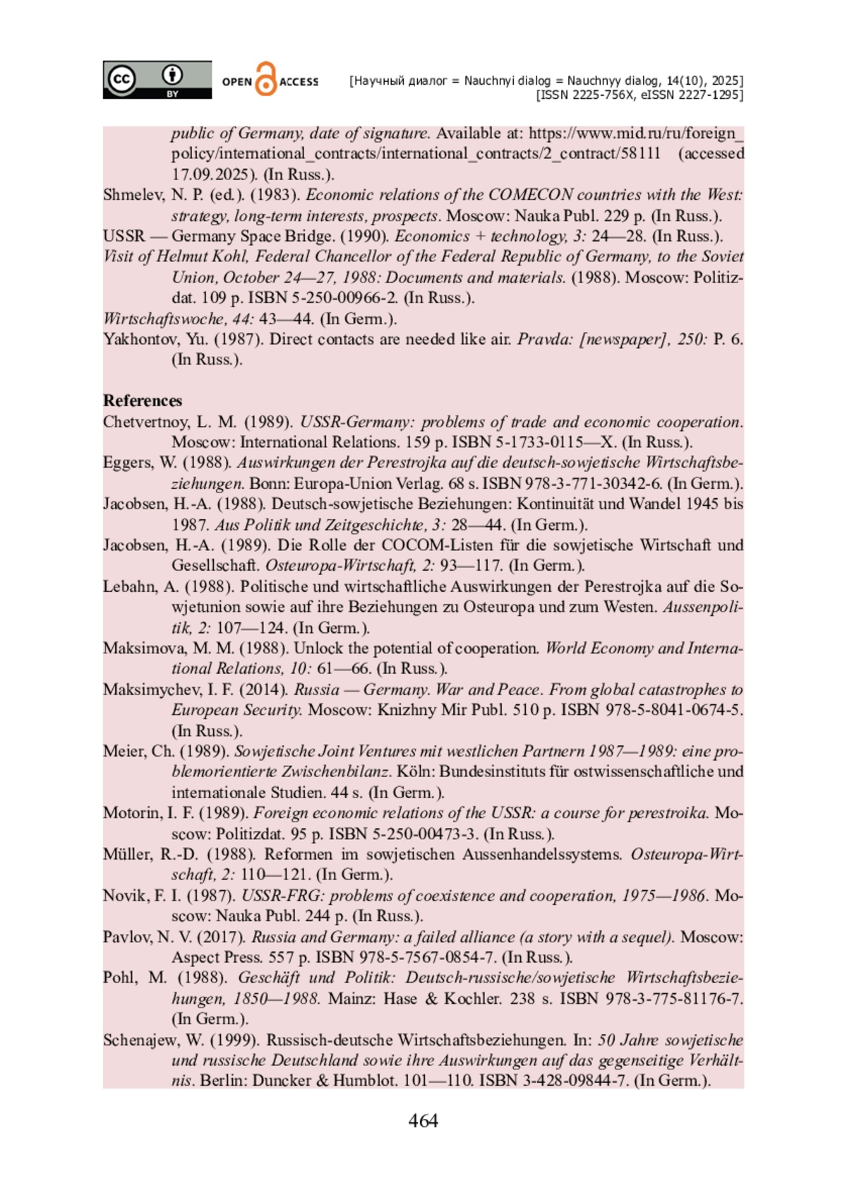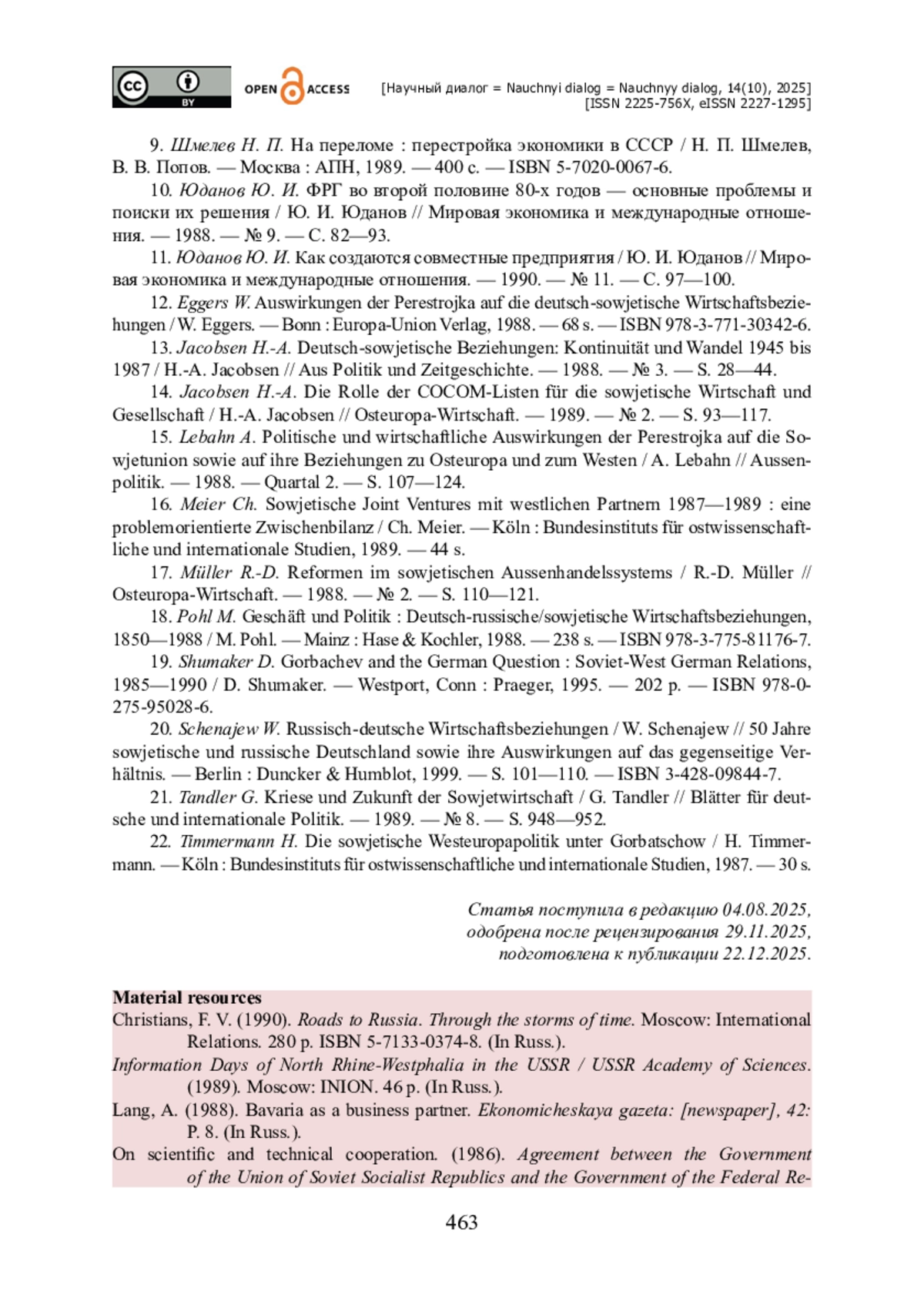 12. Eggers W. Auswirkungen der Perestrojka auf die deutsch-sowjetische Wirtschaftsbeziehungen / W. Eggers. - Bonn : Europa-Union Verlag, 1988. - 68 s. - ISBN 978-3-771-30342-6.