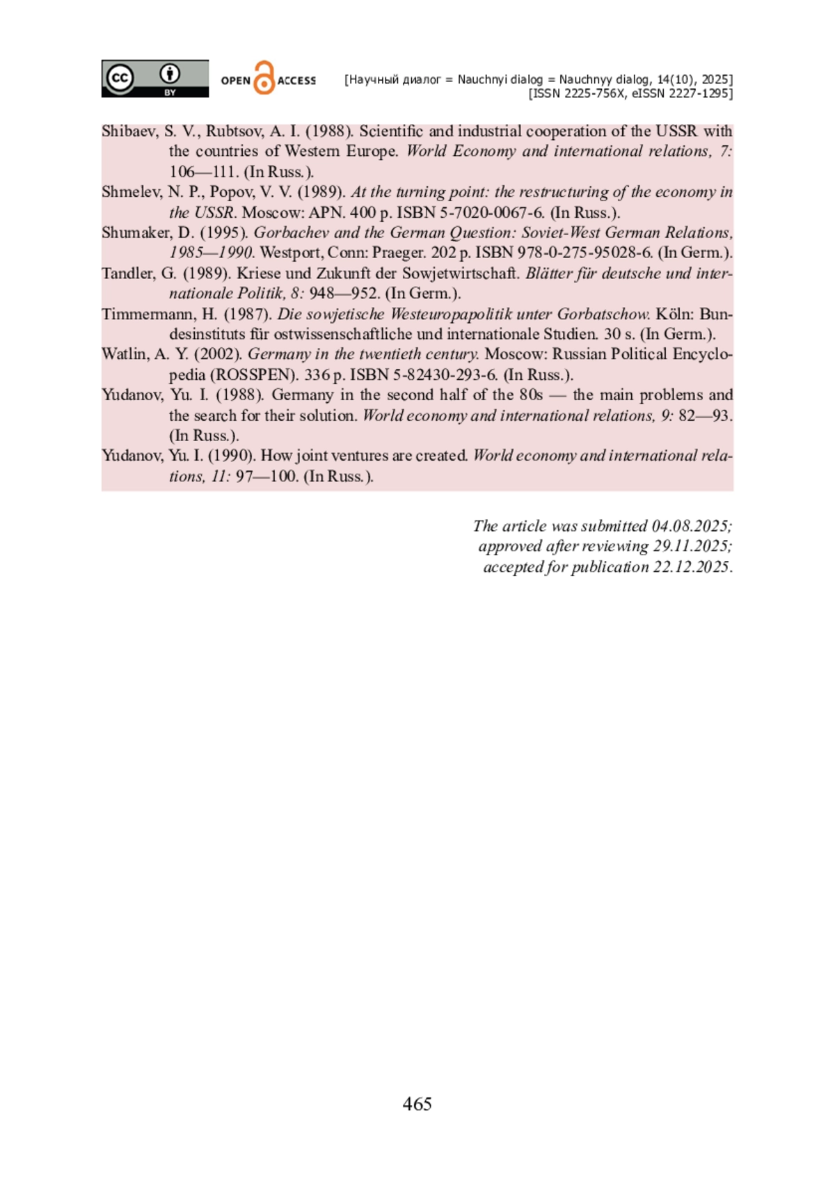 21. Tandler G. Kriese und Zukunft der Sowjetwirtschaft / G. Tandler // Blätter für deutsche und internationale Politik. - 1989. - № 8. - S. 948-952.