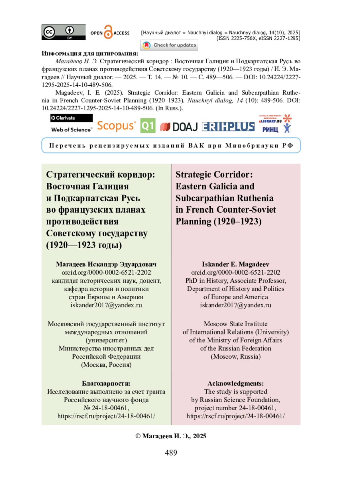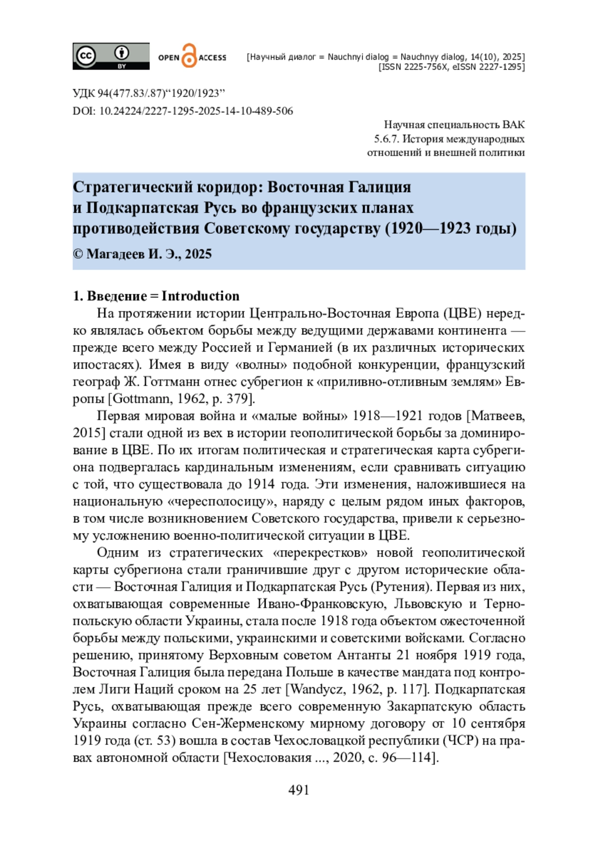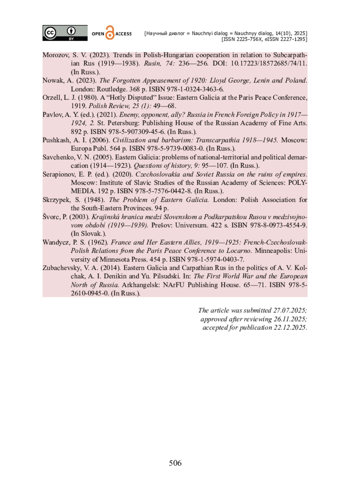 5. Морозов С. В. Тенденции польско-венгерского взаимодействия в отношении Подкарпатской Руси (1919-1938 гг.) / С. В. Морозов // Русин. - 2023. - № 74. - С. 236-256. - https://doi.org/10.17223/18572685/74/11.