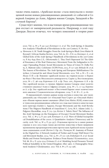 3. Голдстоун Дж. А., Гринин Л. Е., Коротаев А. В. Волны революций XXI столетия // Полис. 2022. № 4. С. 108-119. EDN: DVNOBB