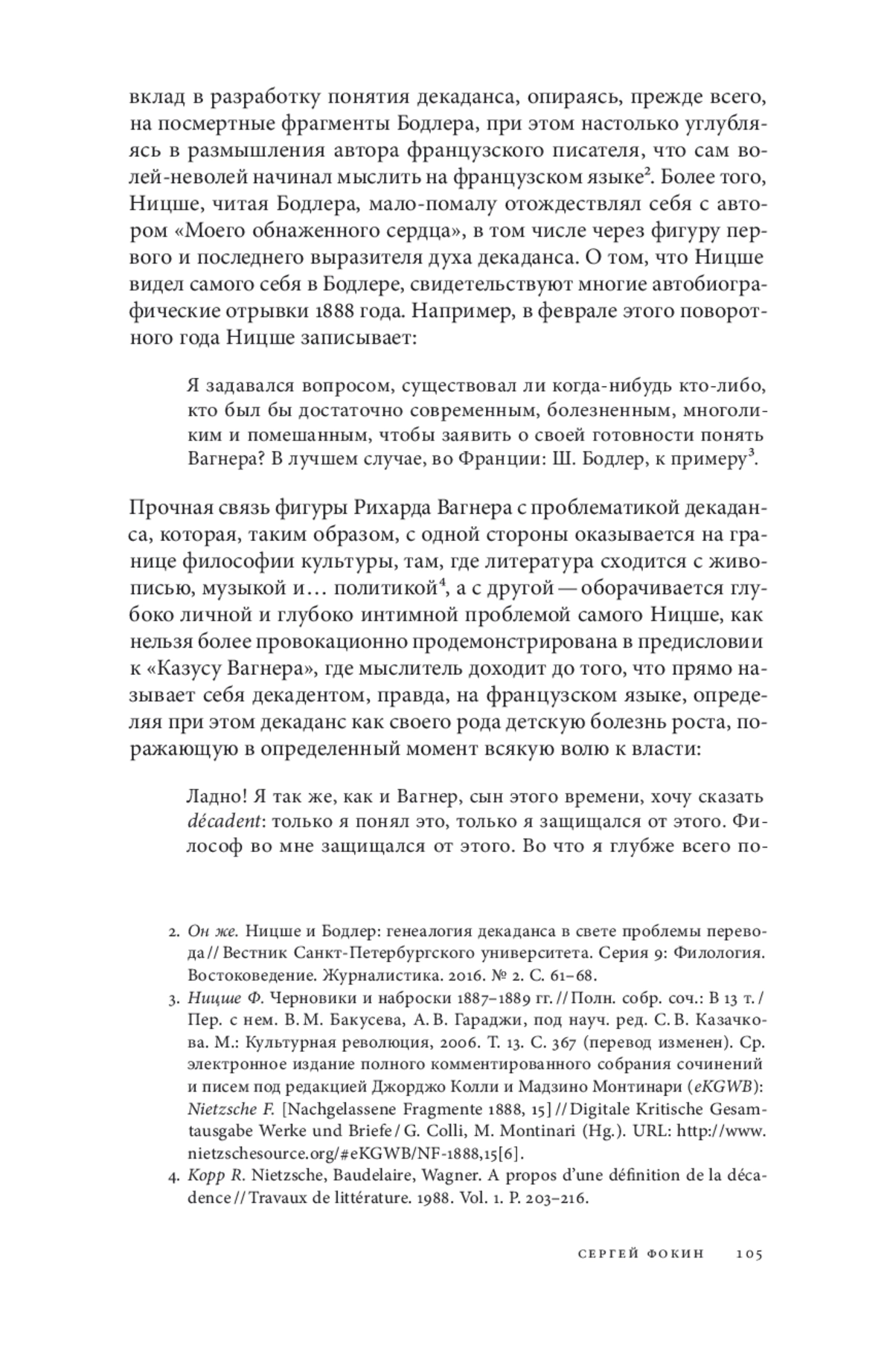 14. Фокин С. Л. Ницше и Бодлер: генеалогия декаданса в свете проблемы перевода // Вестник Санкт-Петербургского университета. Серия 9: Филология. Востоковедение. Журналистика. 2016. № 2. С. 61-68.