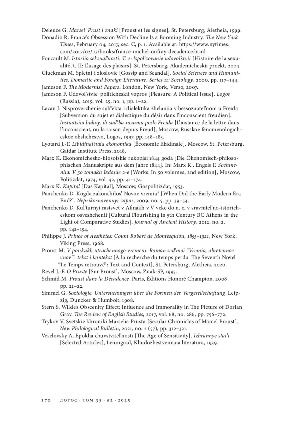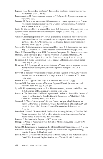 25. Schmid M. Proust dans la Décadence. P.: Éditions Honoré Champion, 2008. P. 21-22.