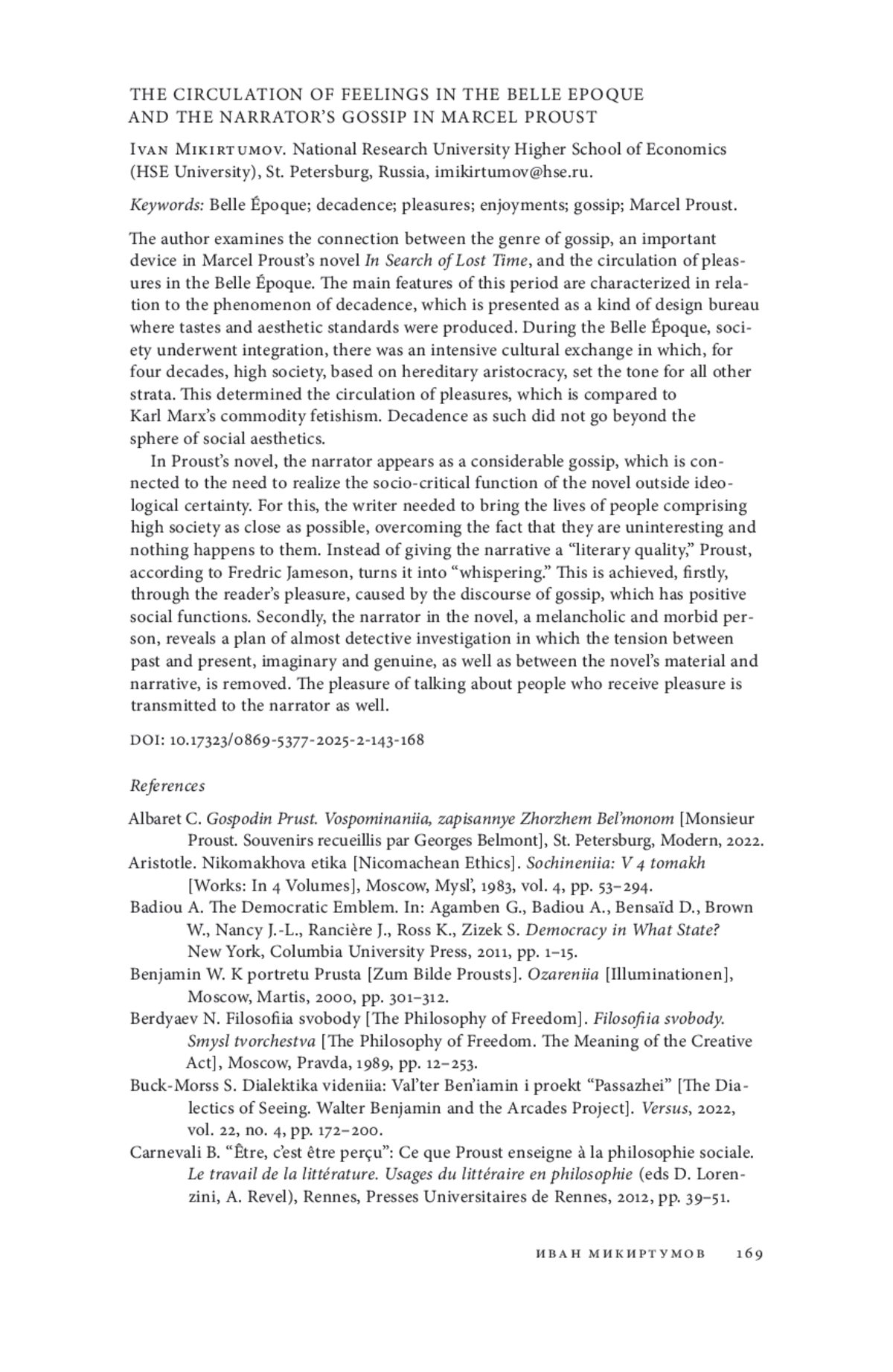 18. Трыков В. П. Светские хроники Марселя Пруста // Новый филологический вестник. 2021. № 2 (57). С. 312-321. EDN: BBYMQS