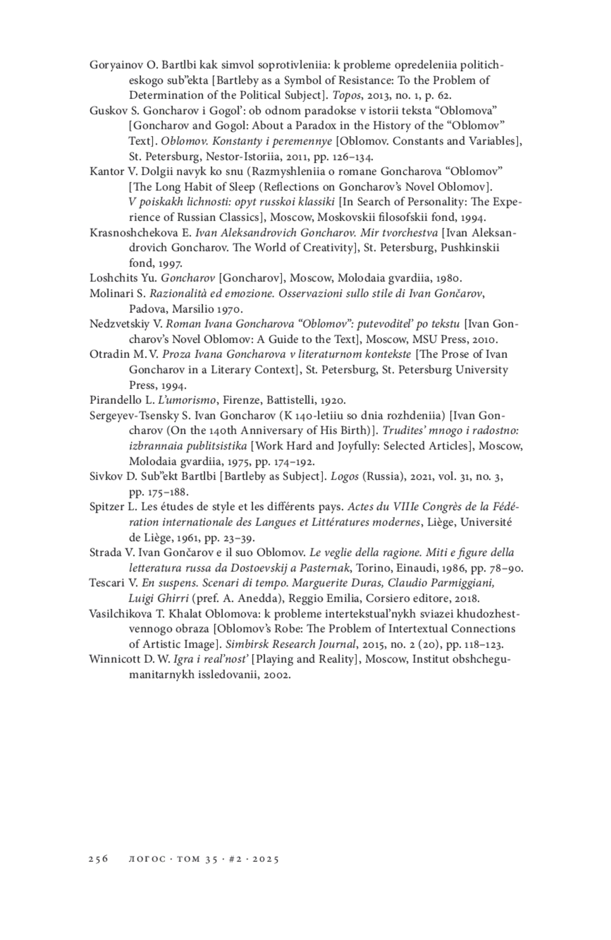 8. Гуськов С. Н. Гончаров и Гоголь: об одном парадоксе в истории текста “Обломова” // Обломов. Константы и переменные / Сост. С. В. Денисенко. СПб.: Нестор-История, 2011. C. 126-134. EDN: STZATX