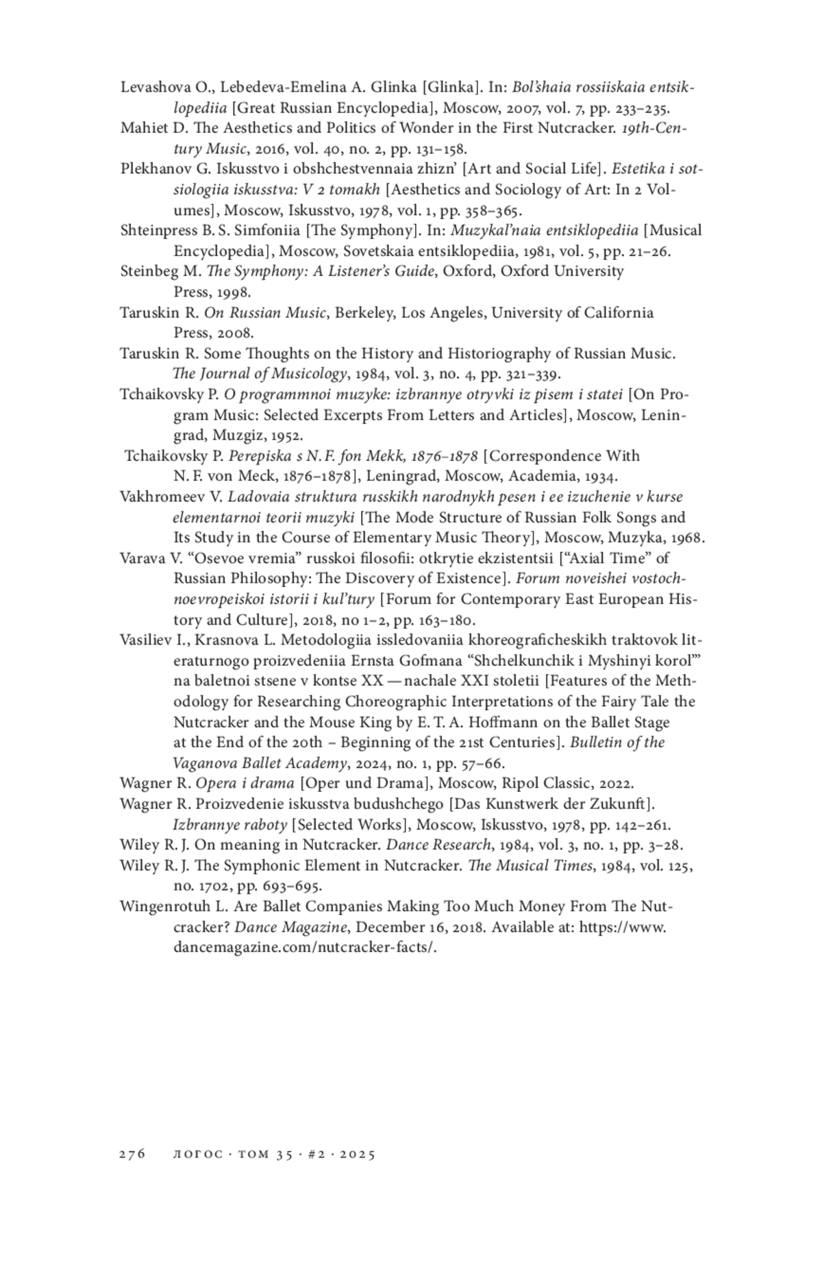 23. Wiley R. J. The Symphonic Element in Nutcracker // The Musical Times. 1984. Vol. 125. № 1702. P. 693-695.