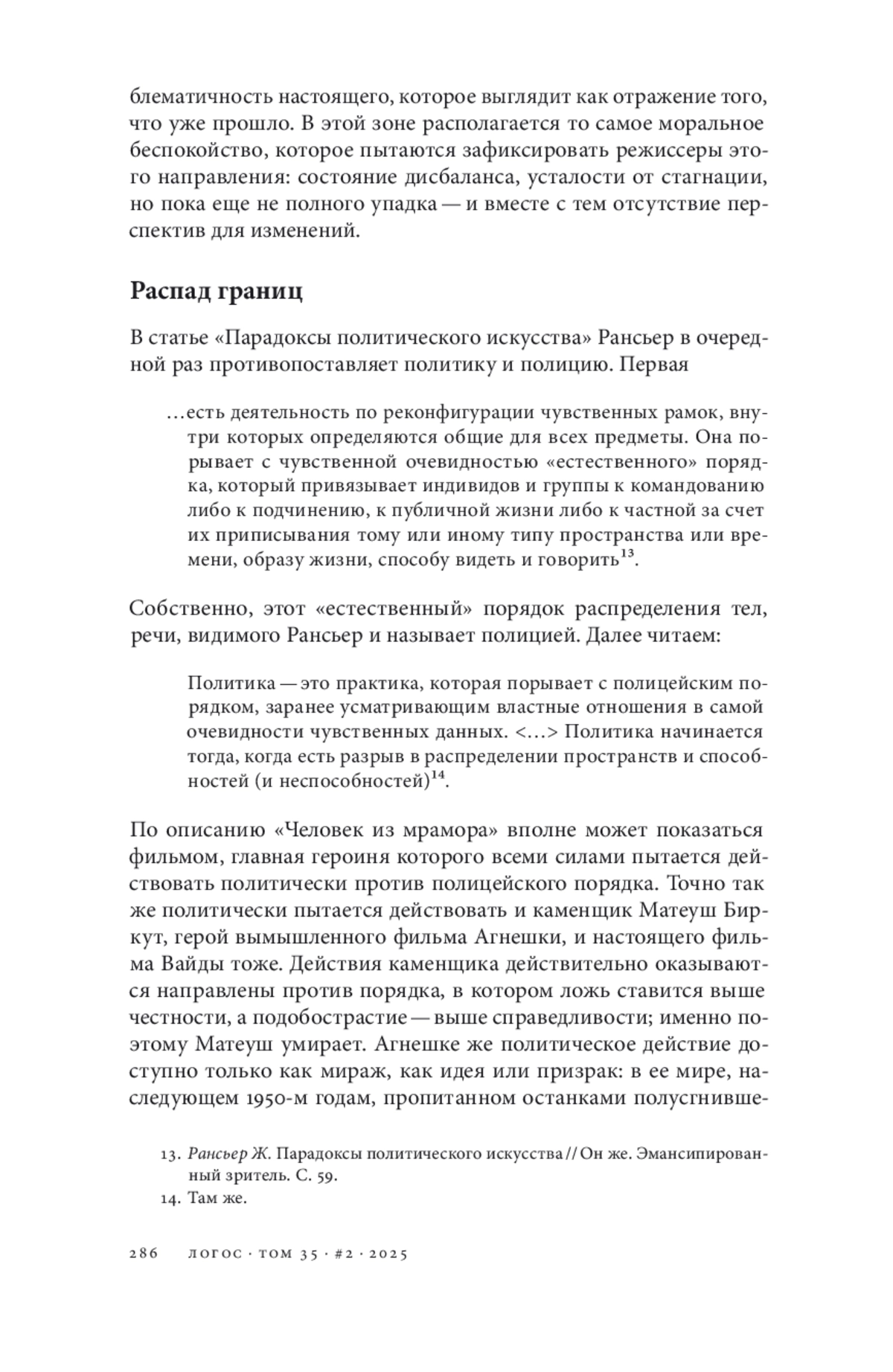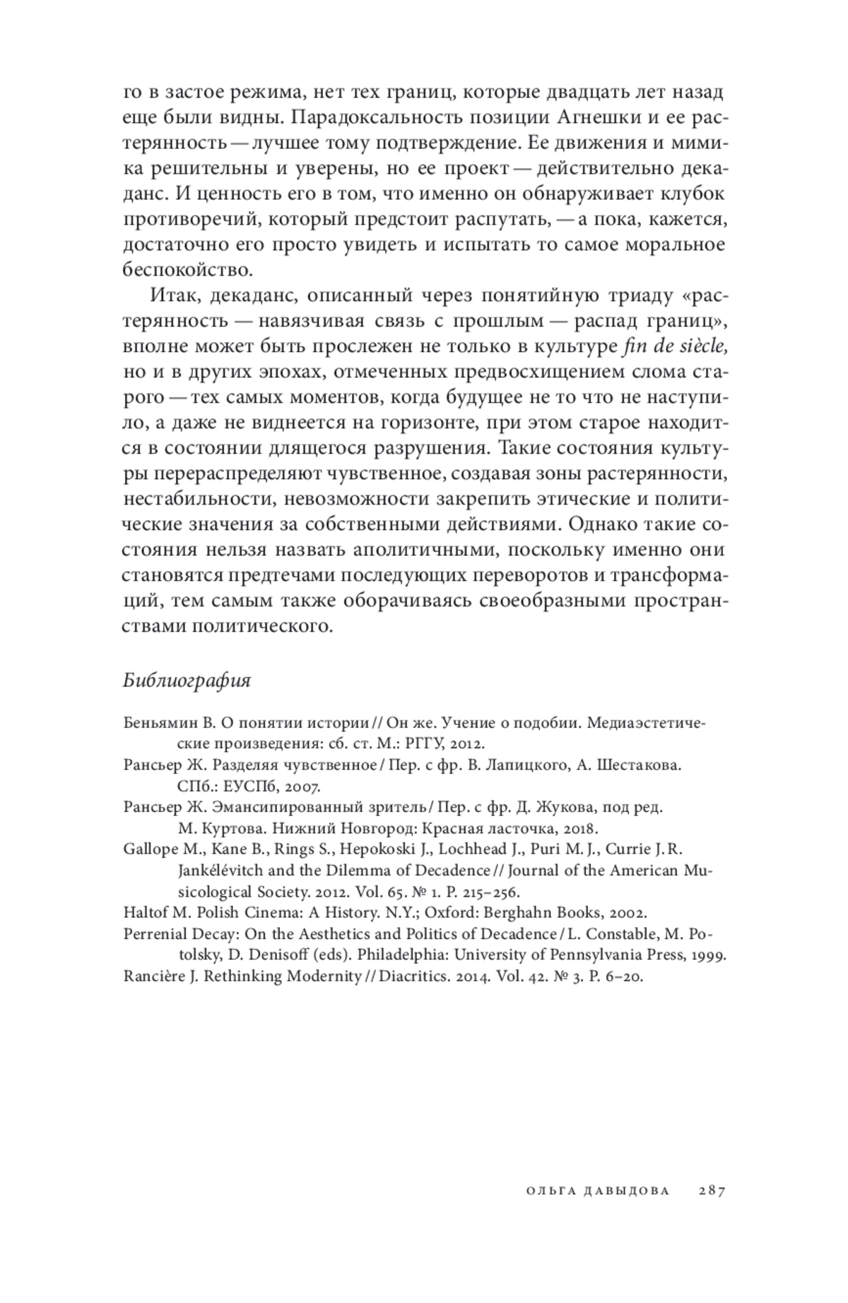 2. Рансьер Ж. Разделяя чувственное / Пер. с фр. В. Лапицкого, А. Шестакова. СПб.: ЕУСПб, 2007.
