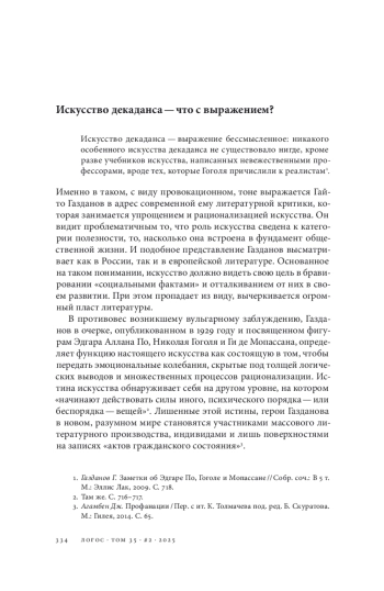 Именно в таком, с виду провокационном, тоне выражается Гайто Газданов в адрес современной ему литературной критики, которая занимается упрощением и рационализацией искусства. Он видит проблематичным то, что роль искусства сведена к категории полезности, то, насколько она встроена в фундамент общественной жизни. И подобное представление Газданов высматривает как в России, так и в европейской литературе. Основанное на таком понимании, искусство должно видеть свою цель в бравировании «социальными фактами» и отталкиванием от них в своем развитии. При этом пропадает из виду, вычеркивается огромный пласт литературы.