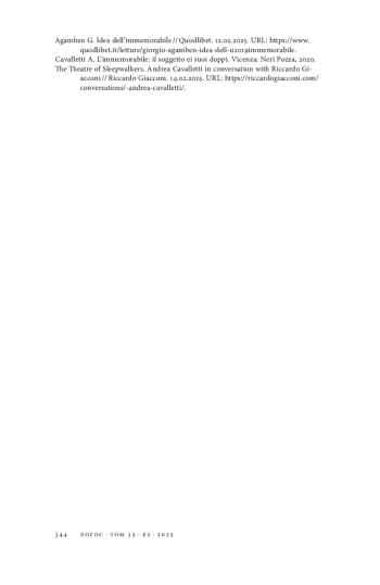 13. The Theatre of Sleepwalkers. Andrea Cavalletti in conversation with Riccardo Giacconi // Riccardo Giacconi. 14.02.2025. URL: https://riccardogiacconi.com/conversations/-andrea-cavalletti/.
