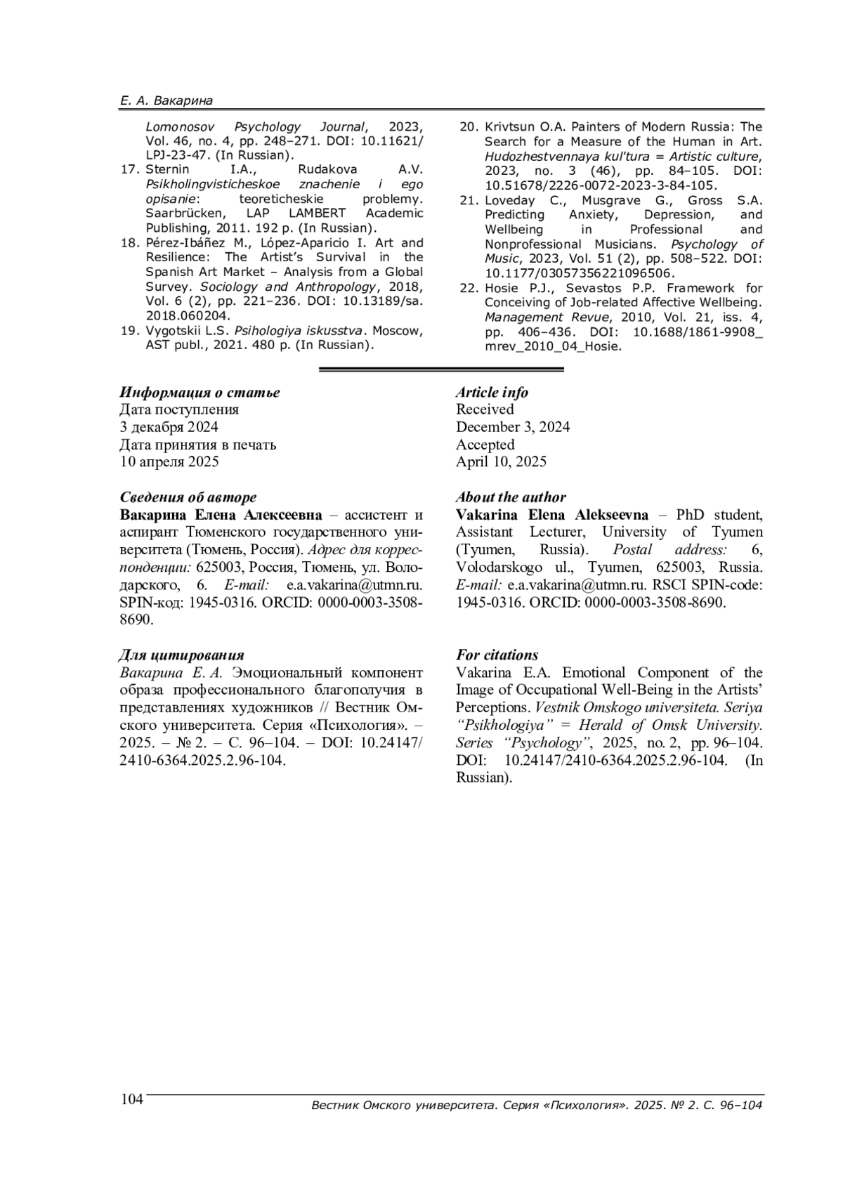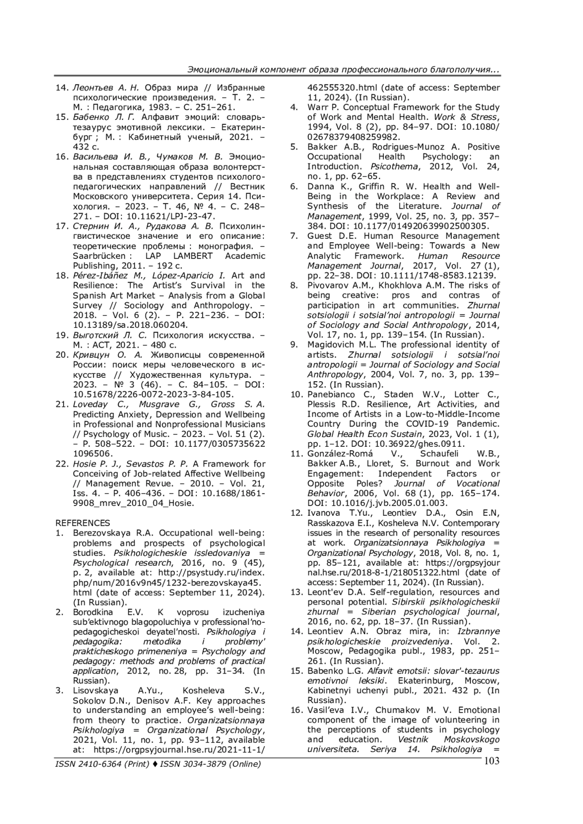 16. Васильева И. В., Чумаков М. В. Эмоциональная составляющая образа волонтерства в представлениях студентов психолого-педагогических направлений // Вестник Московского университета. Серия 14. Психология. - 2023. - Т. 46, № 4. - С. 248-271. -. DOI: 10.11621/LPJ-23-47 EDN: ODAMLE