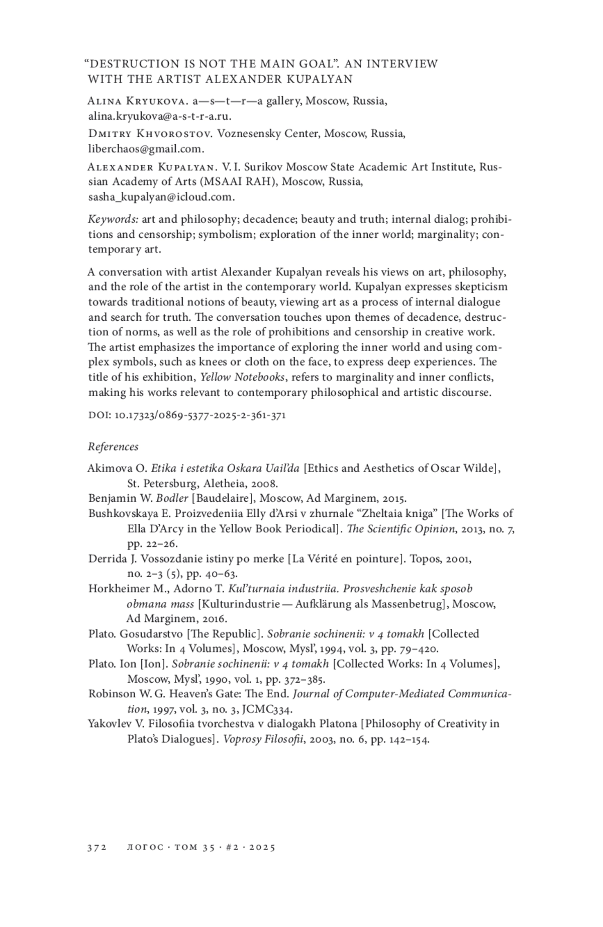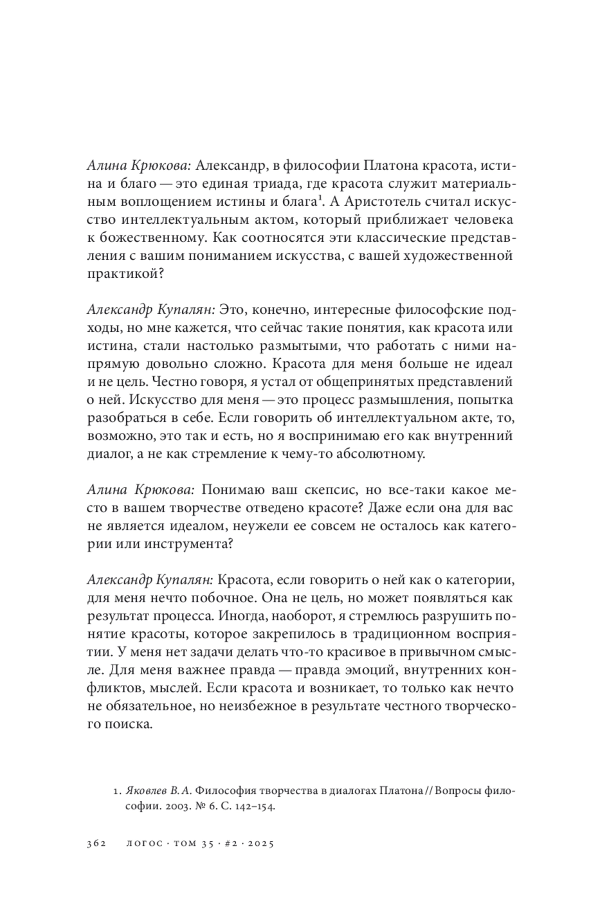8. Яковлев В. А. Философия творчества в диалогах Платона // Вопросы философии. 2003. № 6. С. 142-154. EDN: ONZYNF
