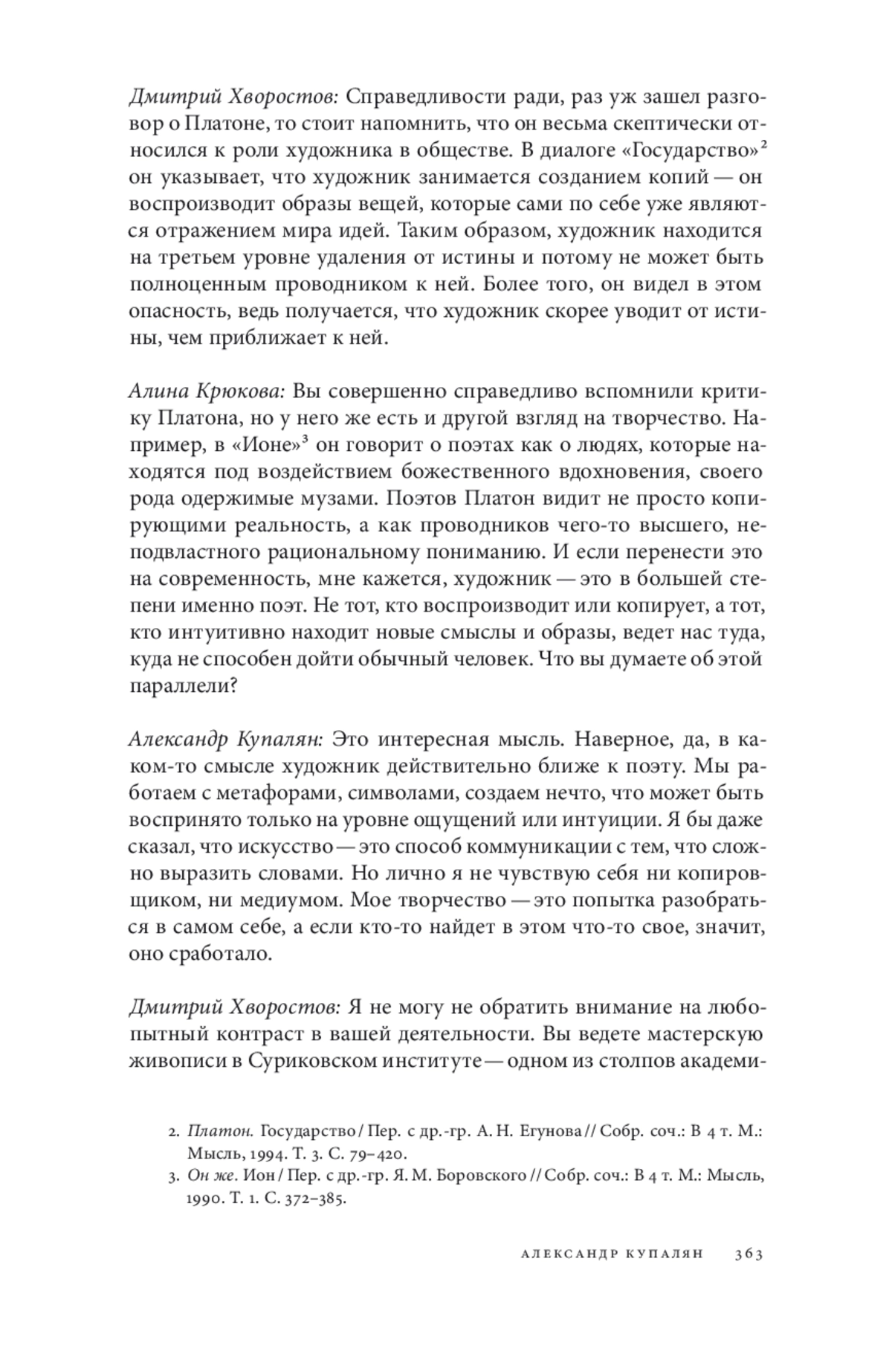 6. Платон. Ион / Пер. с др.-гр. Я. М. Боровского // Собр. соч.: В 4 т. М.: Мысль, 1990. Т. 1. С. 372-385.