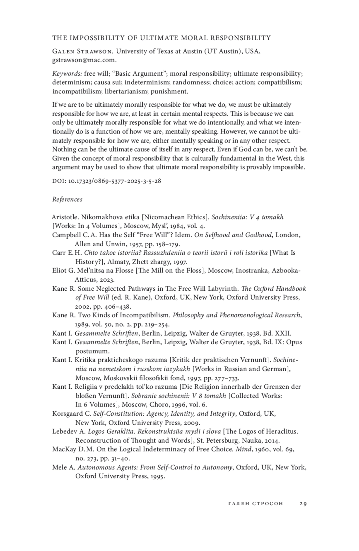 26. Strawson G. The Impossibility of Moral Responsibility // Philosophical Studies: An International Journal for Philosophy in the Analytic Tradition. 1994. Vol. 75. № 1/2. P. 5-24. EDN: BRFNLM