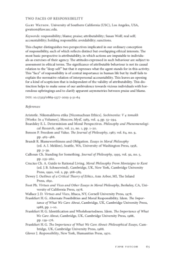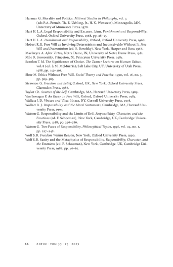 29. Watson G. Two Faces of Responsibility // Philosophical Topics. 1996. Vol. 24. № 2. P. 227-248.