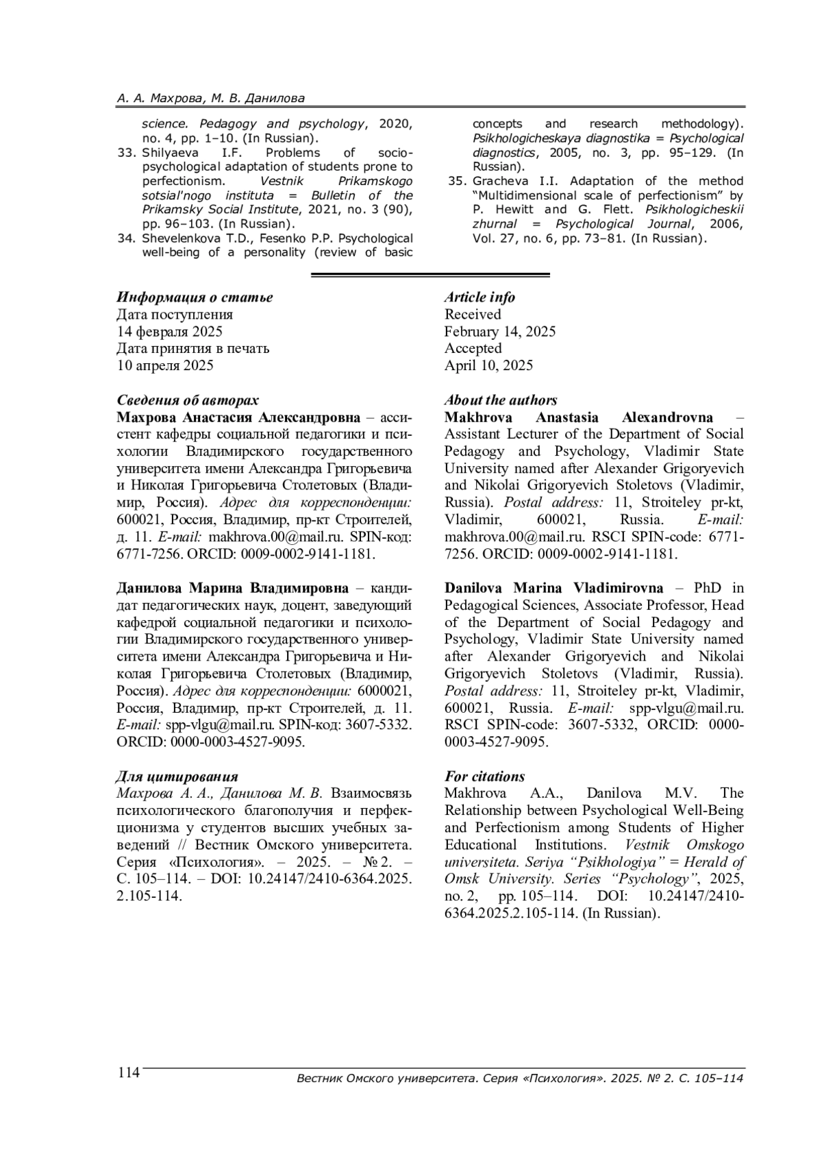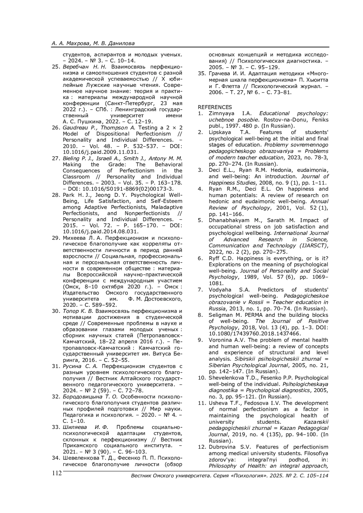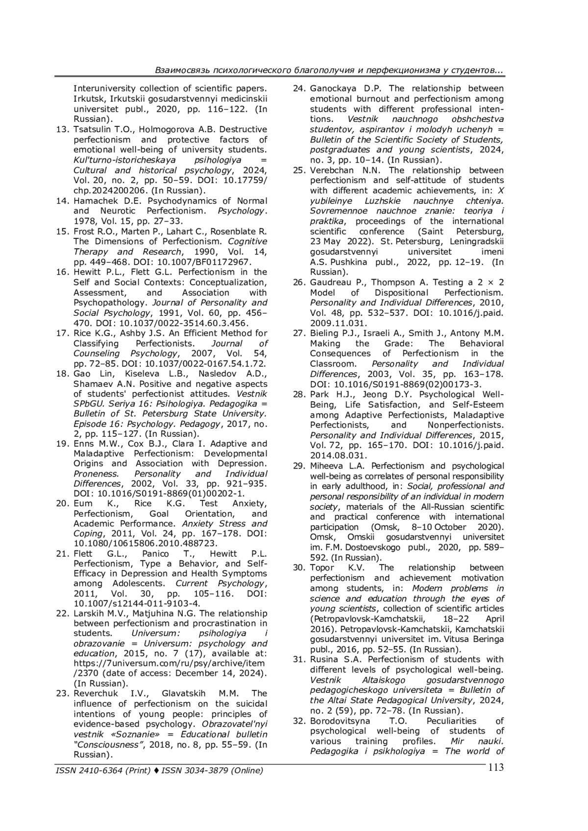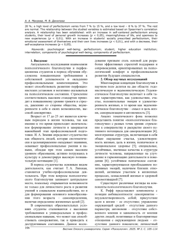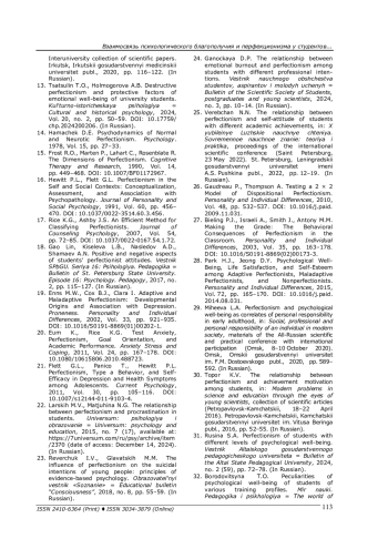 31. Русина С. А. Перфекционизм студентов с разным уровнем психологического благополучия // Вестник Алтайского государственного педагогического университета. - 2024. - № 2 (59). - С. 72-78. EDN: YBCZYQ