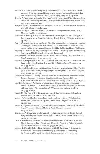3. Беседин А. П. Натуралистический аргумент Питера Стросона в пользу моральной ответственности // Вестник Московского университета. Серия 7. Философия. 2015. № 6. С. 8-16.