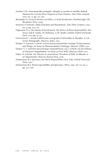 6. Васильев В. В. В защиту классического компатибилизма: эссе о свободе воли. М.: URSS, 2017. EDN: YKQHVQ