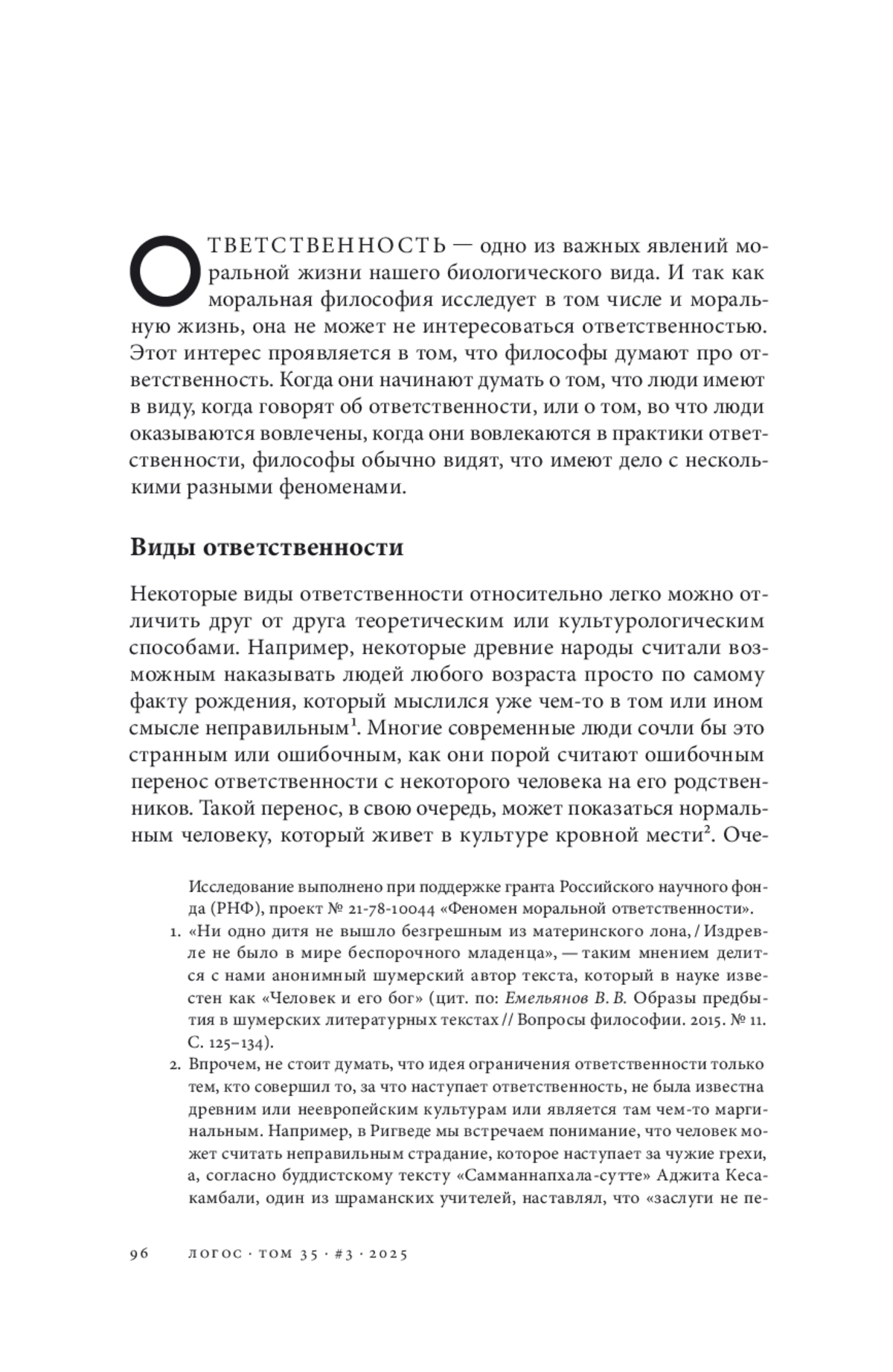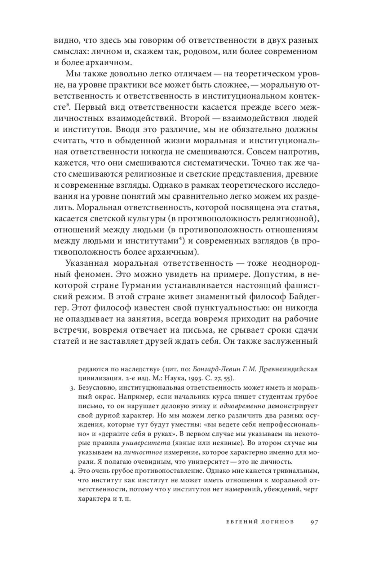 ОТ В Е Т С Т В Е Н Н О С Т Ь — одно из важных явлений моральной жизни нашего биологического вида. И так как моральная философия исследует в том числе и моральную жизнь, она не может не интересоваться ответственностью. Этот интерес проявляется в том, что философы думают про ответственность. Когда они начинают думать о том, что люди имеют в виду, когда говорят об ответственности, или о том, во что люди оказываются вовлечены, когда они вовлекаются в практики ответственности, философы обычно видят, что имеют дело с несколькими разными феноменами