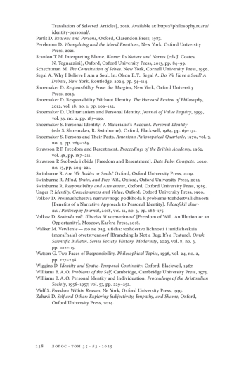 35. Shoemaker D. Responsibility Without Identity // The Harvard Review of Philosophy. 2012. Vol. 18. № 1. P. 109-132.
