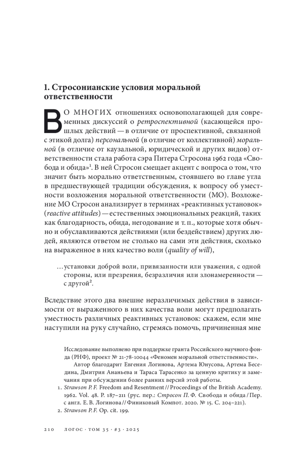 15. Стросон П. Ф. Свобода и обида / Пер. с англ. Е. В. Логинова // Финиковый компот. 2020. № 15. С. 204-221. EDN: REGTCS