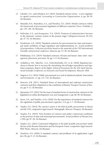 15. Лебедев В.А., Лебедева Е.И. Типовые условия контрактов - новый регулятор в капстроительстве // Бухучет в строительных организациях. 2023. № 6. С. 48-59. EDN: CZTULI