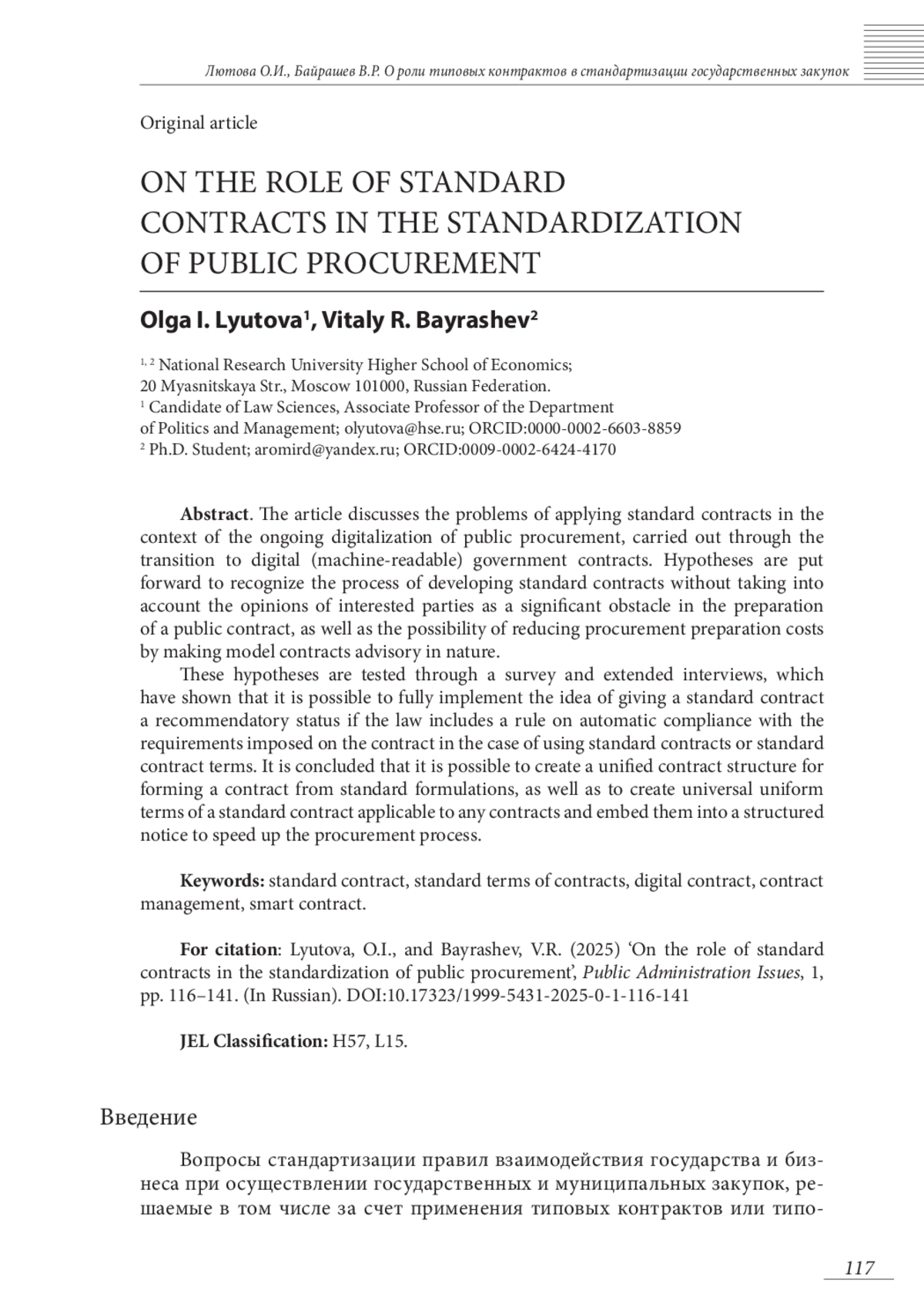 5. Байрашев В.Р. Каталогизация объектов закупки как основное условие успешного перехода к цифровым государственным контрактам // Вопросы государственного и муниципального управления. 2024. № 3. С. 137-161. EDN: MQHOBH