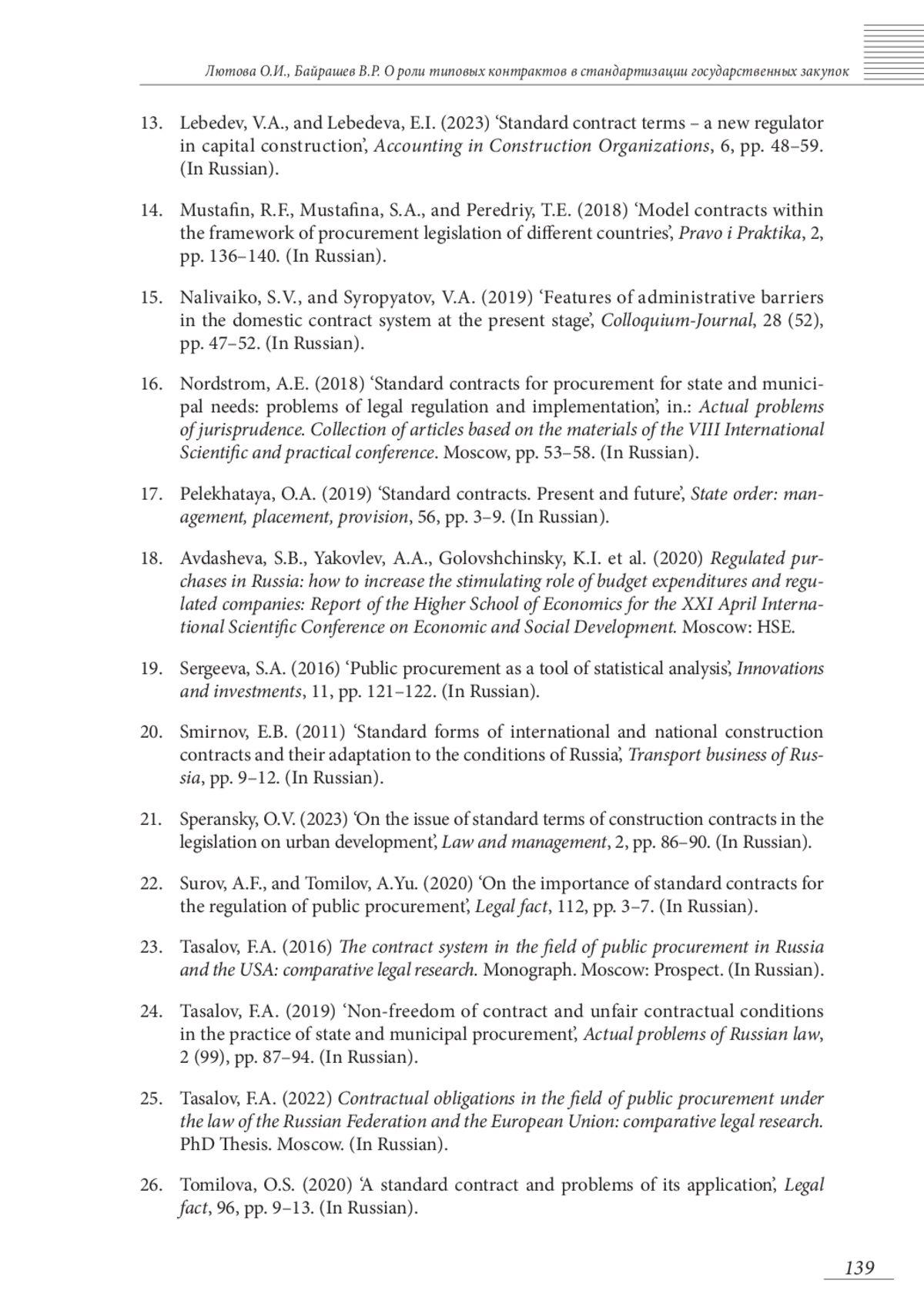23. Суров А.Ф., Томилов А.Ю. К вопросу о значимости типовых контрактов для сферы регулирования государственных закупок // Юридический факт. 2020. № 112. С. 3-7. EDN: THDBGA