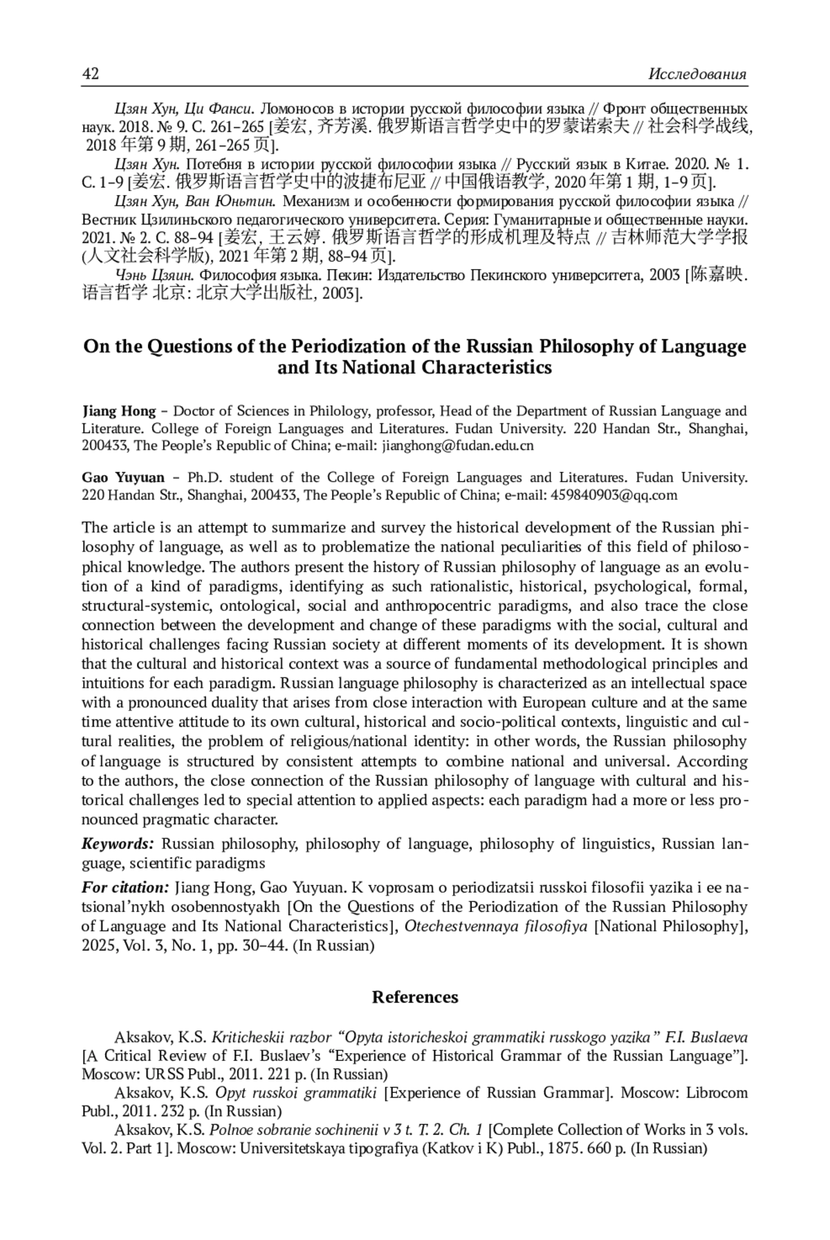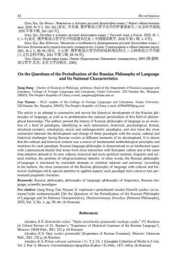 31. Цзян Хун, Ван Юньтин. Механизм и особенности формирования русской философии языка // Вестник Цзилиньского педагогического университета. Серия: Гуманитарные и общественные науки. 2021. № 2. С. 88-94.