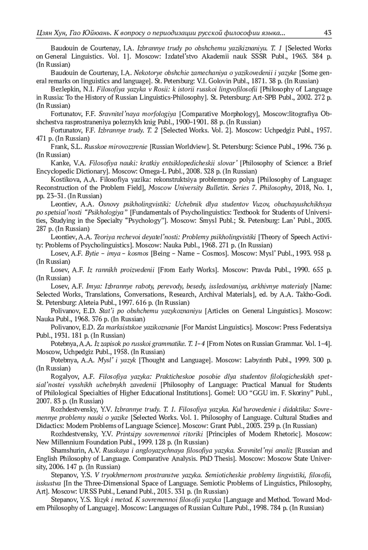 姜宏, 王云婷. 俄罗斯语言哲学的形成机理及特点 // 吉林师范大学学报(人文社会科学版), 2021年第2期, 88-94页.