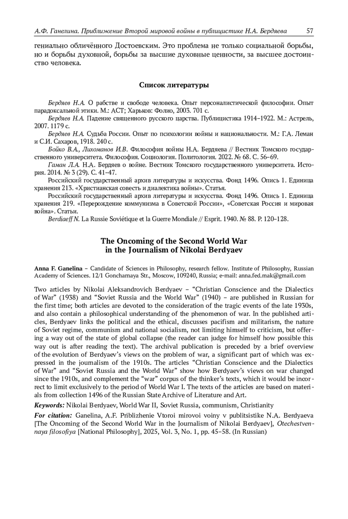 4. Бойко В.А., Лихоманов И.В. Философия войны Н.А. Бердяева // Вестник Томского государственного университета. Философия. Социология. Политология. 2022. № 68. С. 56-69. EDN: XRCQXG