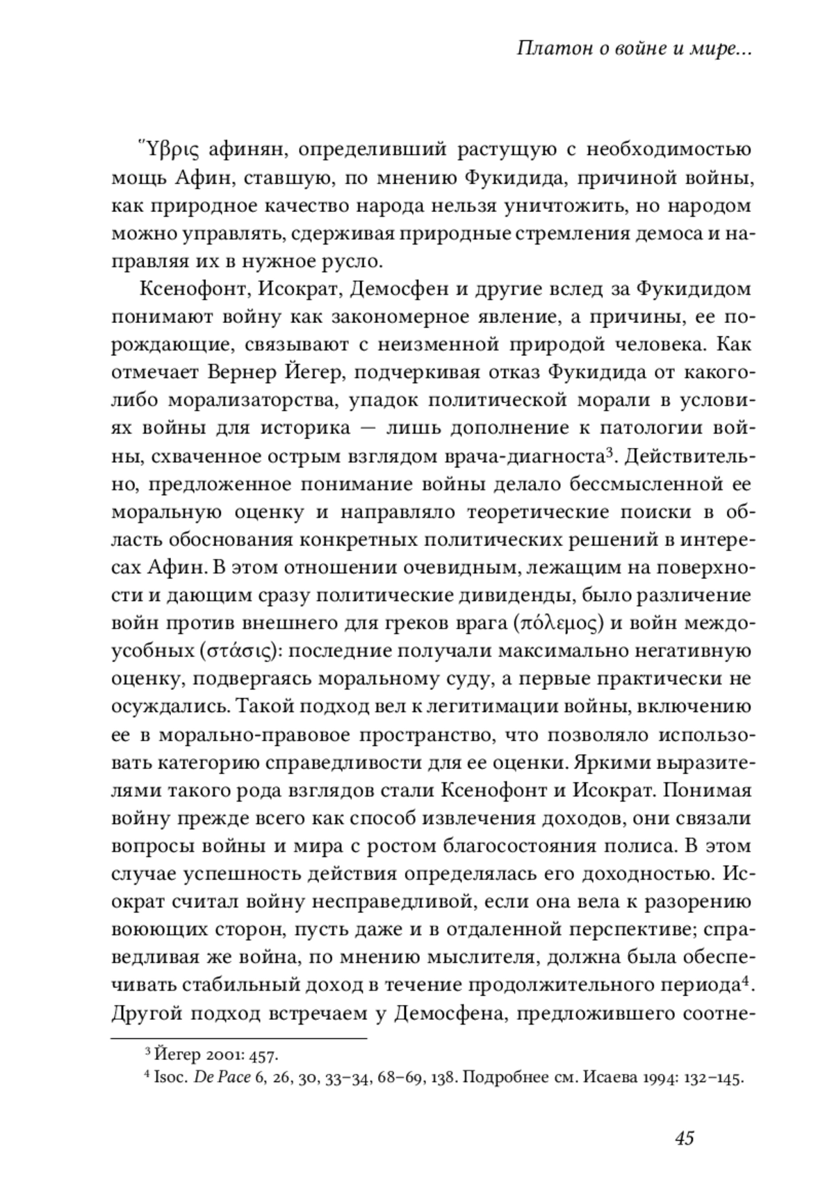 Вопросы природы войны, ее причин и последствий становятся предметом размышлений и обсуждений практически всех ведущих афинских политиков, публицистов, историков, философов IV в. до н. э. Закончившаяся заключением позорного для Афин мира Пелопонесская война лишь обострила имевшиеся социально-политические противоречия; ее окончание не принесло желанного мира; наоборот, военные столкновения между греческими полисами стали чаще и кровопролитнее, а методы ведения борьбы — ожесточеннее. Именно в войне стали видеть причину всех бед — разрушения прежней системы ценностей, привычных норм и образа жизни.