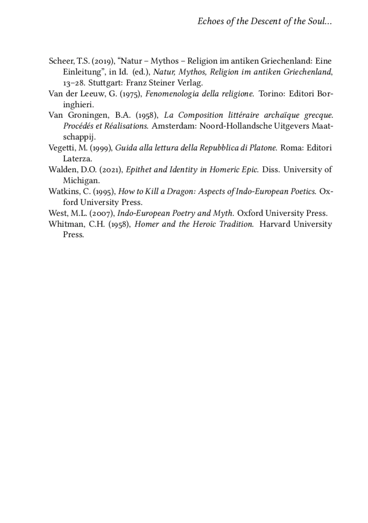 32. Шеер, Т. С. (2019), “Natur-Mythos-Religion im antiken Griechenland: Eine Einleitung”, в ИД. (изд.), Natur, Mythos, Religion im antiken Griechenland, 13-28. Штутгарт: Франц Штайнер Верлаг.