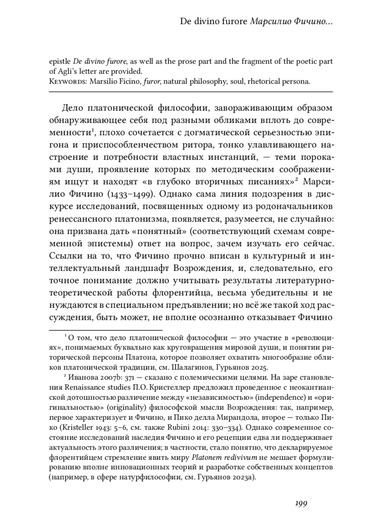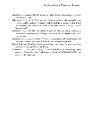 11. Шалагинов, Д.С.; Гурьянов, И.Г. (2025), “О душе: платонизм множественности в контексте натурфилософии Марсилио Фичино”, ΣΧΟΛΗ(Schole) 19.1: 417-453.