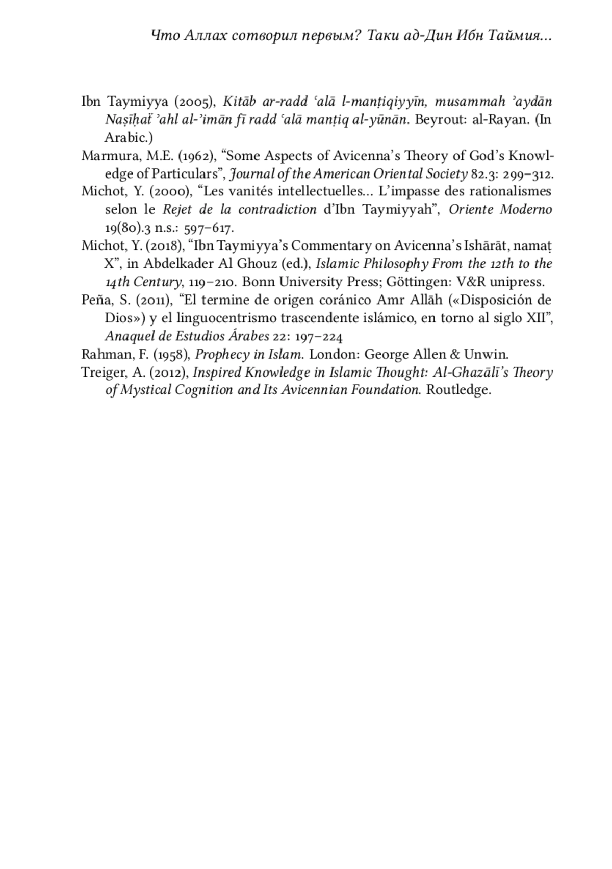 18. Michot, Y. (2000), “Les vanités intellectuelles… L’impasse des rationalismesselon le Rejet de la contradiction d’Ibn Taymiyyah”, Oriente Moderno 19(80).3 n.s.: 597-617.
