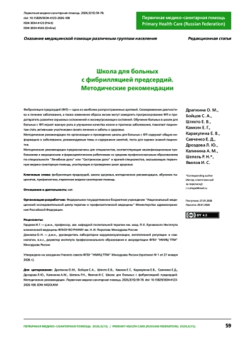 16. Муромкина А. В., Интякова Ю. В., Назарова О. А. Методика и эффективность обучения в “Школе для пациентов с фибрилляцией предсердий”. Вестник аритмологии. 2008;52:37-40.