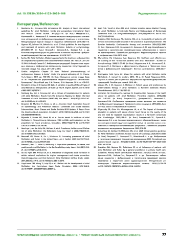 1. Марданов Б. У., Корнеева М. Н., Ахмедова Э. Б. Анализ последних международных клинических исследований по фибрилляции предсердий: тенденции и перспективы. Международный журнал сердца и сосудистых заболеваний. 2015;3(8):11-6.
