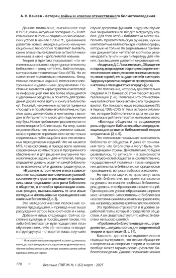 33. Ванеев А. Н. Разработка методологических и методических проблем библиотековедения (обзор публикаций второй половины XX в.) // Библиосфера. 2007. № 3. С. 47-52. EDN: HZZOXP