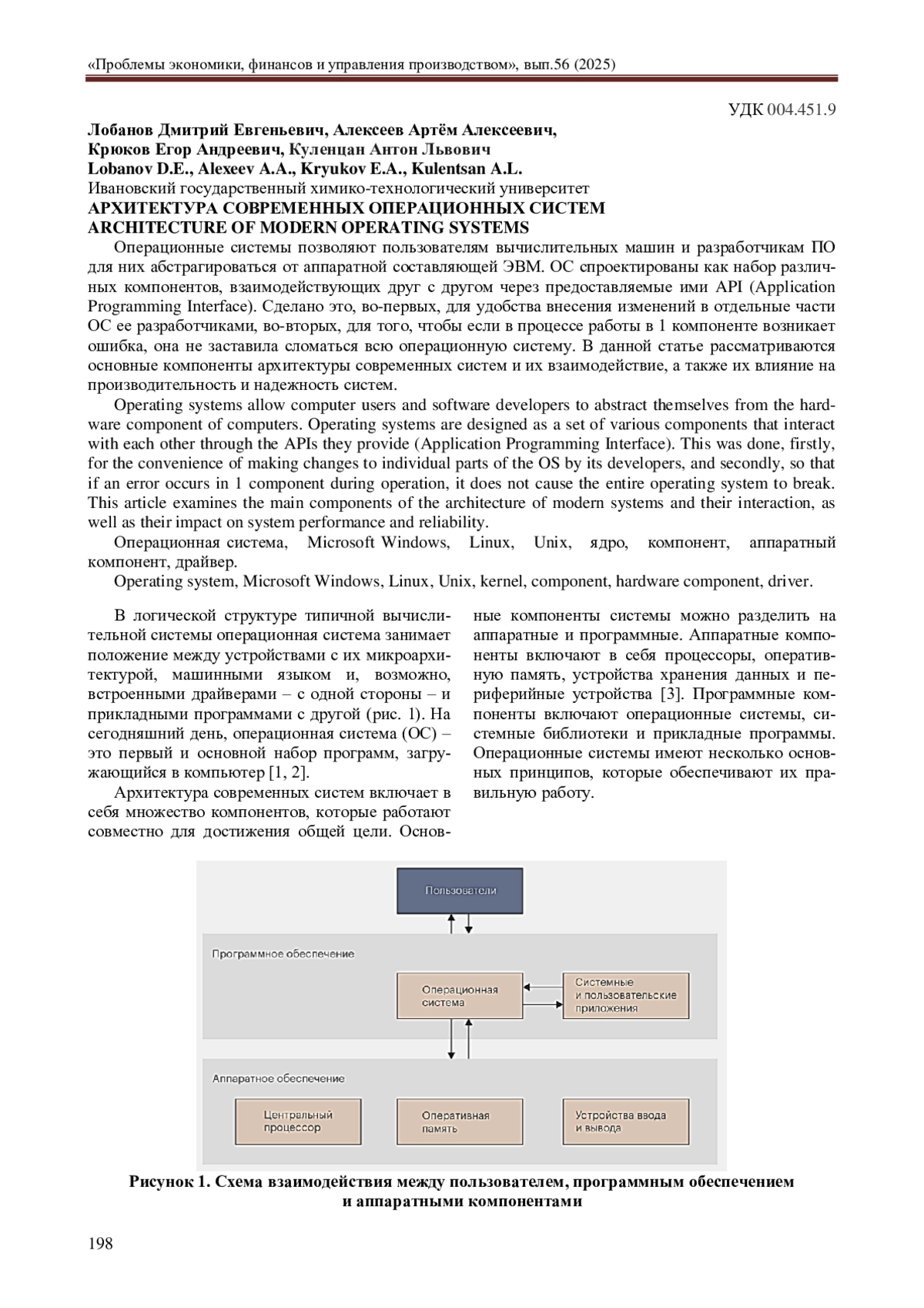 Операционные системы позволяют пользователям вычислительных машин и разработчикам ПО для них абстрагироваться от аппаратной составляющей ЭВМ. ОС спроектированы как набор различных компонентов, взаимодействующих друг с другом через предоставляемые ими API (Application Programming Interface). Сделано это, во-первых, для удобства внесения изменений в отдельные части ОС ее разработчиками, во-вторых, для того, чтобы если в процессе работы в 1 компоненте возникает ошибка, она не заставила сломаться всю операционную систему. В данной статье рассматриваются основные компоненты архитектуры современных систем и их взаимодействие, а также их влияние на производительность и надежность систем.