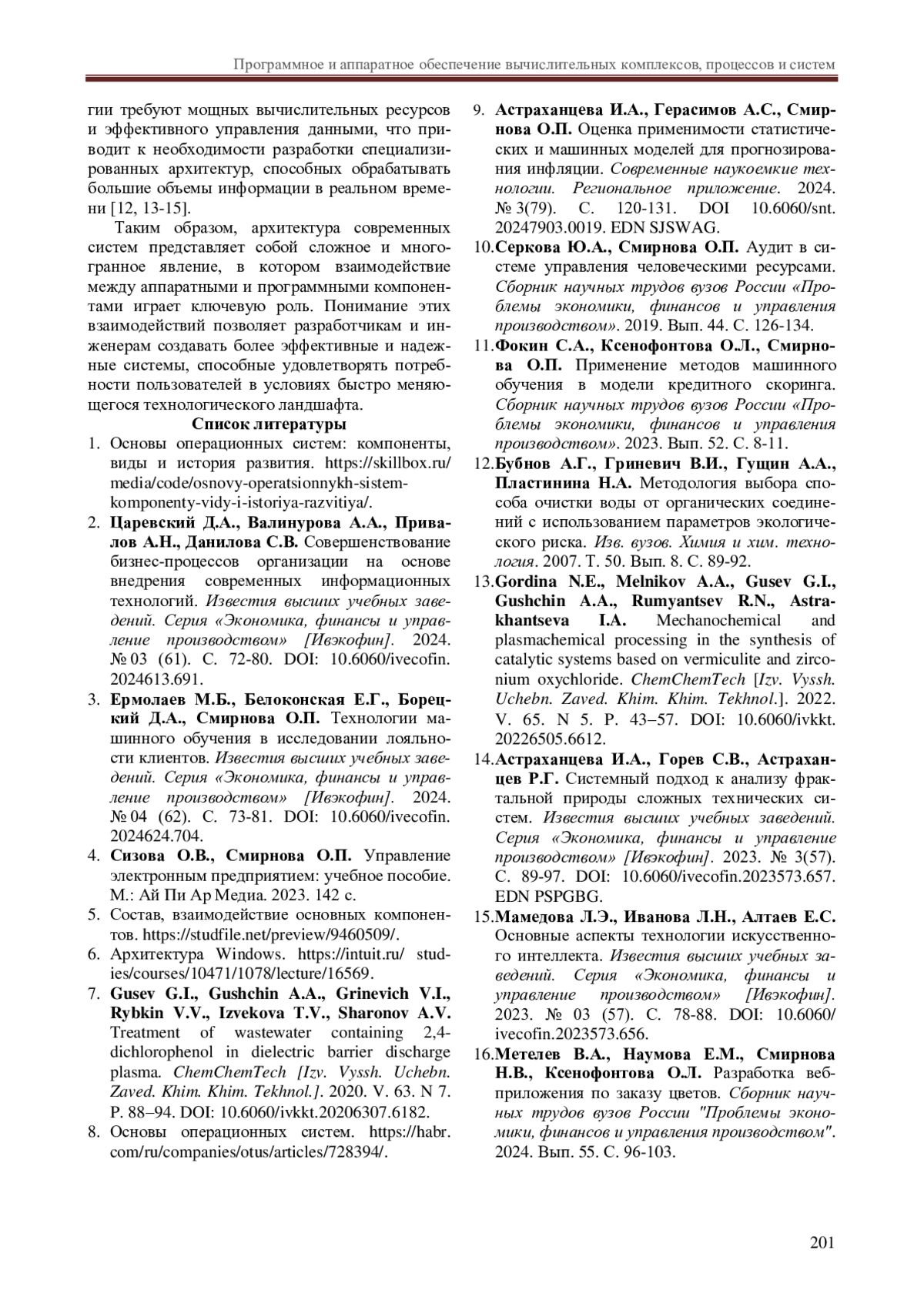 9. Астраханцева И.А., Герасимов А.С., Смирнова О.П. Оценка применимости статистических и машинных моделей для прогнозирования инфляции. Современные наукоемкие технологии. Региональное приложение. 2024. № 3(79). С. 120-131. DOI: 10.6060/snt.20247903.0019 EDN: SJSWAG