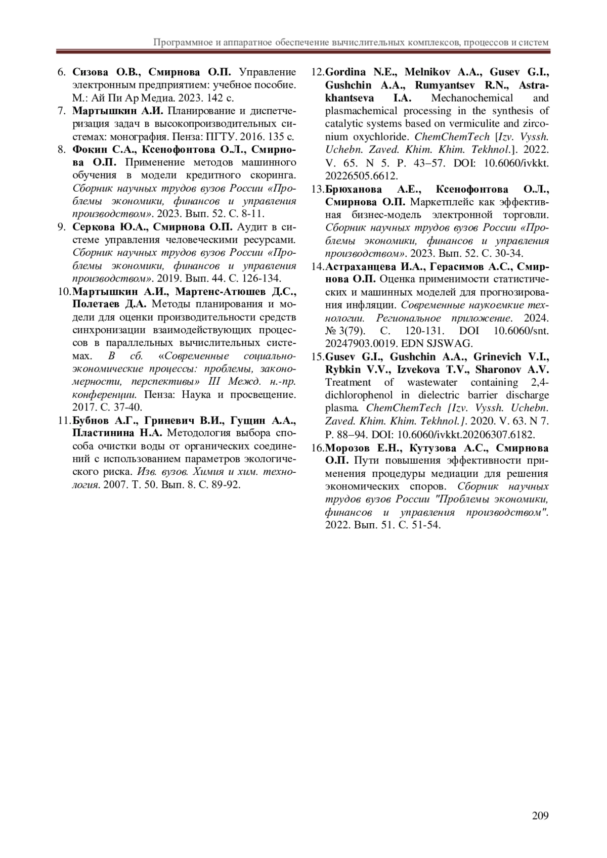 12. Gordina N.E., Melnikov A.A., Gusev G.I., Gushchin A.A., Rumyantsev R.N., Astrakhantseva I.A. Mechanochemical and plasmachemical processing in the synthesis of catalytic systems based on vermiculite and zirconium oxychloride. ChemChemTech [Izv. Vyssh. Uchebn. Zaved. Khim. Khim. Tekhnol.]. 2022. V. 65. N 5. P. 43-57. DOI: 10.6060/ivkkt.20226505.6612 EDN: KDQEVD