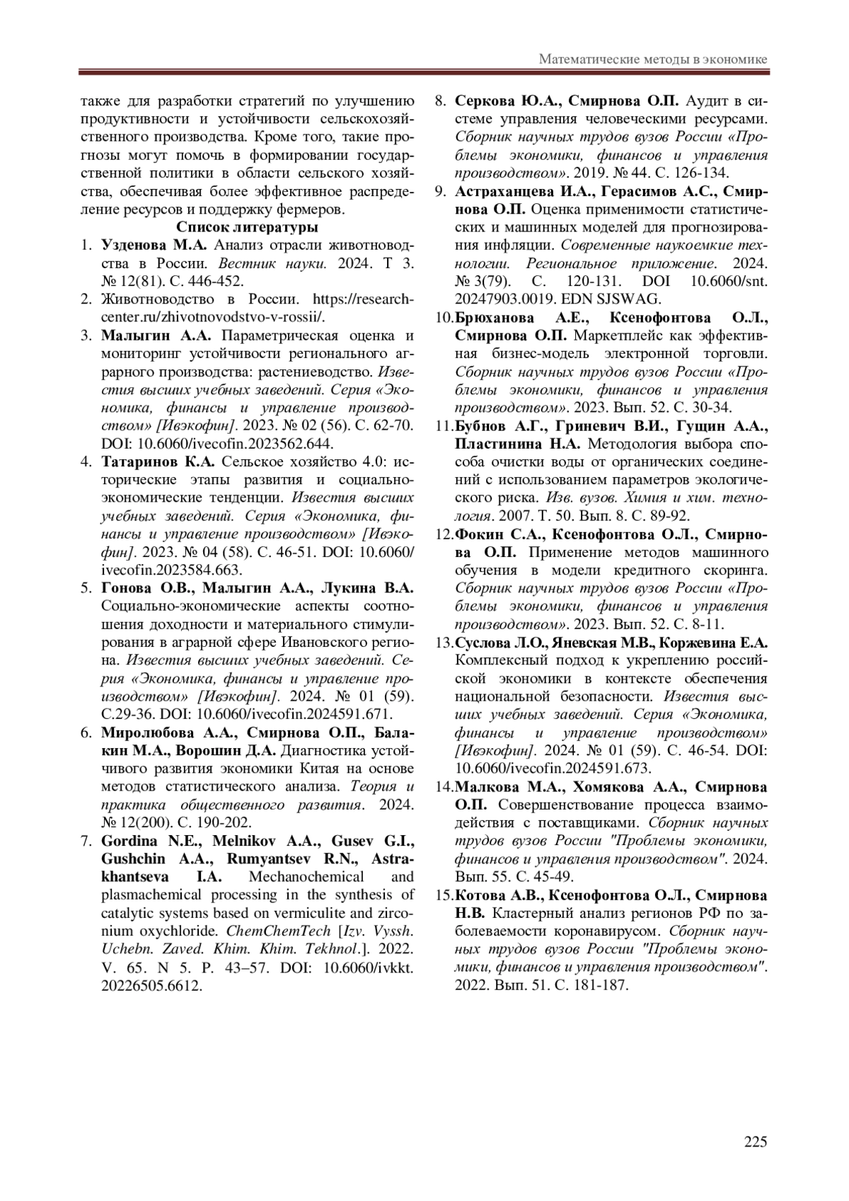 9. Астраханцева И.А., Герасимов А.С., Смирнова О.П. Оценка применимости статистических и машинных моделей для прогнозирования инфляции. Современные наукоемкие технологии. Региональное приложение. 2024. № 3(79). С. 120-131. DOI: 10.6060/snt.20247903.0019 EDN: SJSWAG