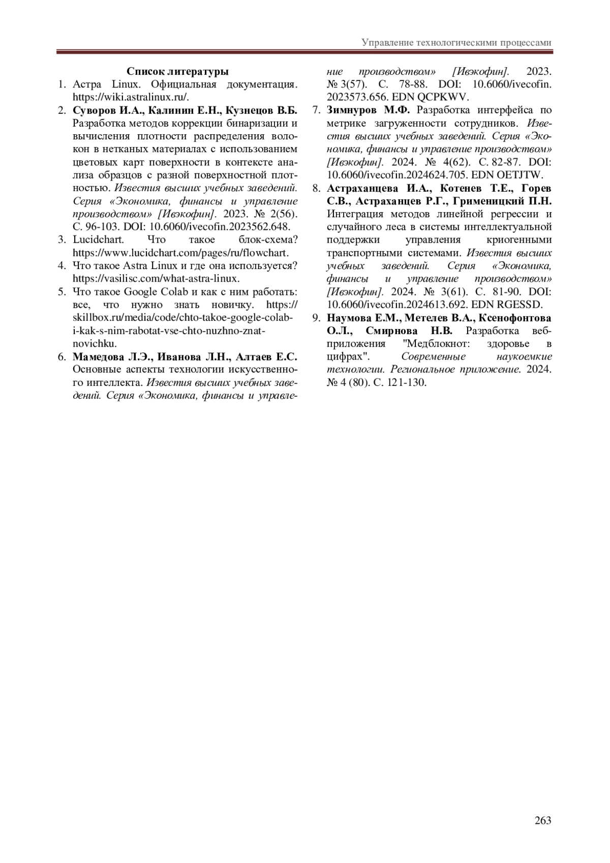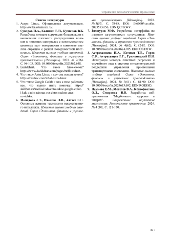 6. Мамедова Л.Э., Иванова Л.Н., Алтаев Е.С. Основные аспекты технологии искусственного интеллекта. Известия высших учебных заведений. Серия “Экономика, финансы и управление производством” [Ивэкофин]. 2023. № 3(57). С. 78-88. DOI: 10.6060/ivecofin.2023573.656 EDN: QCPKWV