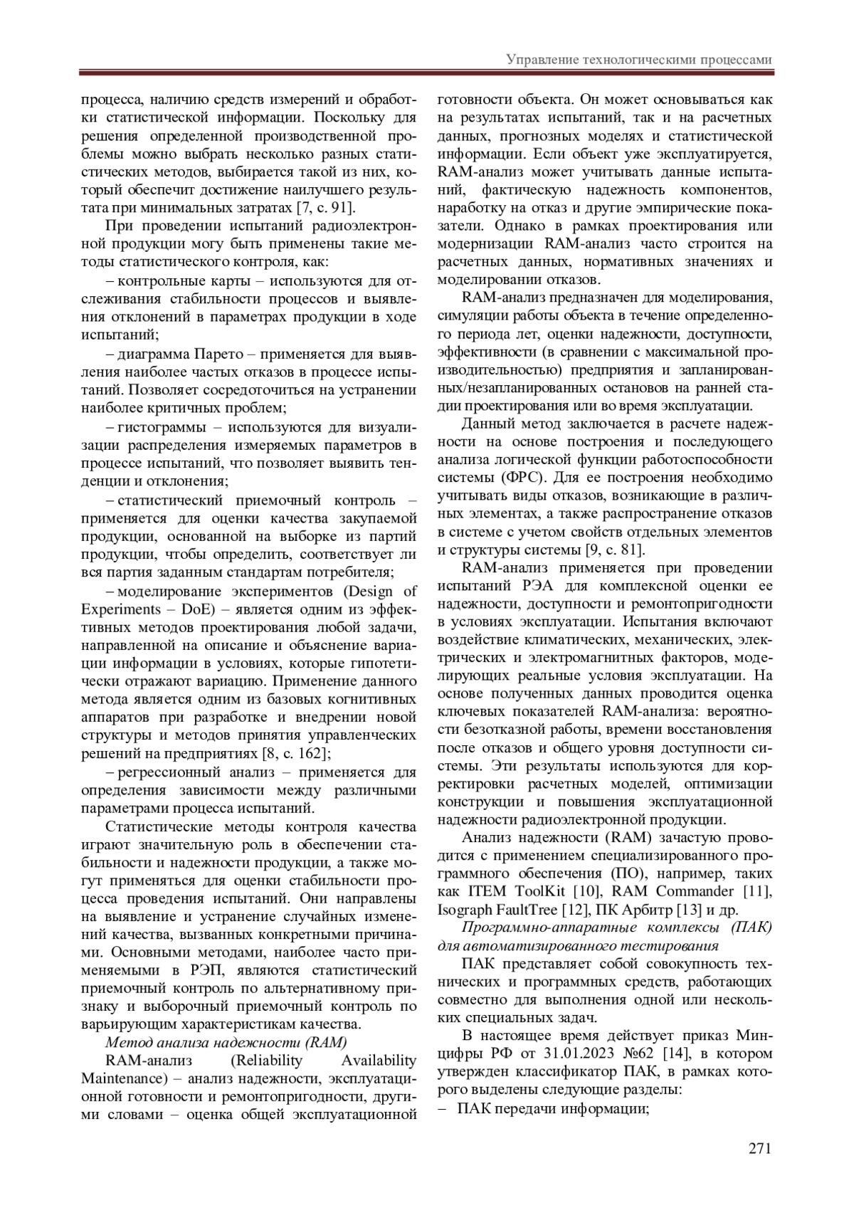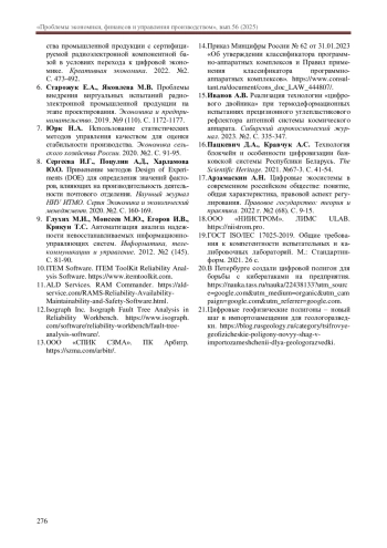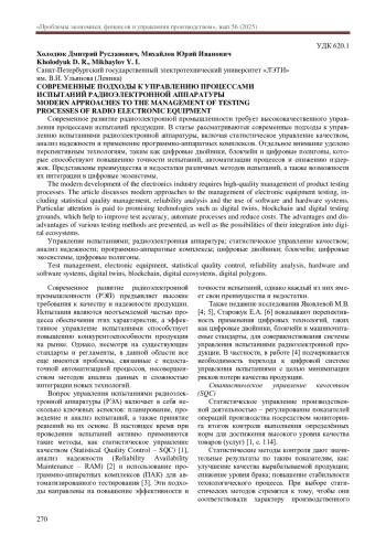 УПРАВЛЕНИЕ ИСПЫТАНИЯМИ, РАДИОЭЛЕКТРОННАЯ АППАРАТУРА, СТАТИСТИЧЕСКОЕ УПРАВЛЕНИЕ КАЧЕСТВОМ, АНАЛИЗ НАДЕЖНОСТИ, ПРОГРАММНО-АППАРАТНЫЕ КОМПЛЕКСЫ, ЦИФРОВЫЕ ДВОЙНИКИ, БЛОКЧЕЙН, ЦИФРОВЫЕ ЭКОСИСТЕМЫ, ЦИФРОВЫЕ ПОЛИГОНЫ