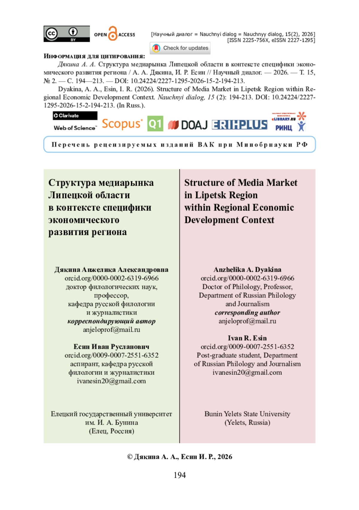 2. Вартанова Е. Л. Меняющаяся российская медиаиндустрия : теоретические подходы / Е. Л. Вартанова // Вестник Санкт-Петербургского университета. Язык и литература. - 2018. - Т. 15. - Выпуск 2. - С. 186-196. - https://doi.org/10.21638/spbu09.2018.203