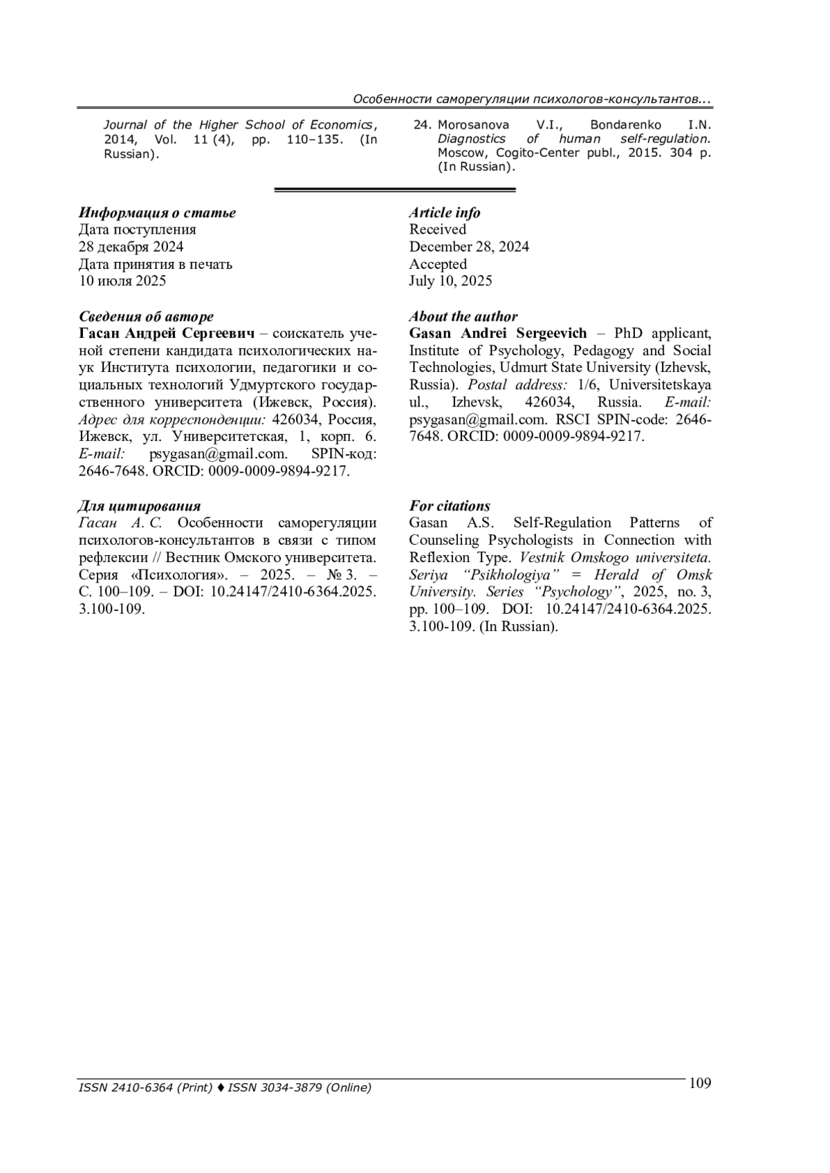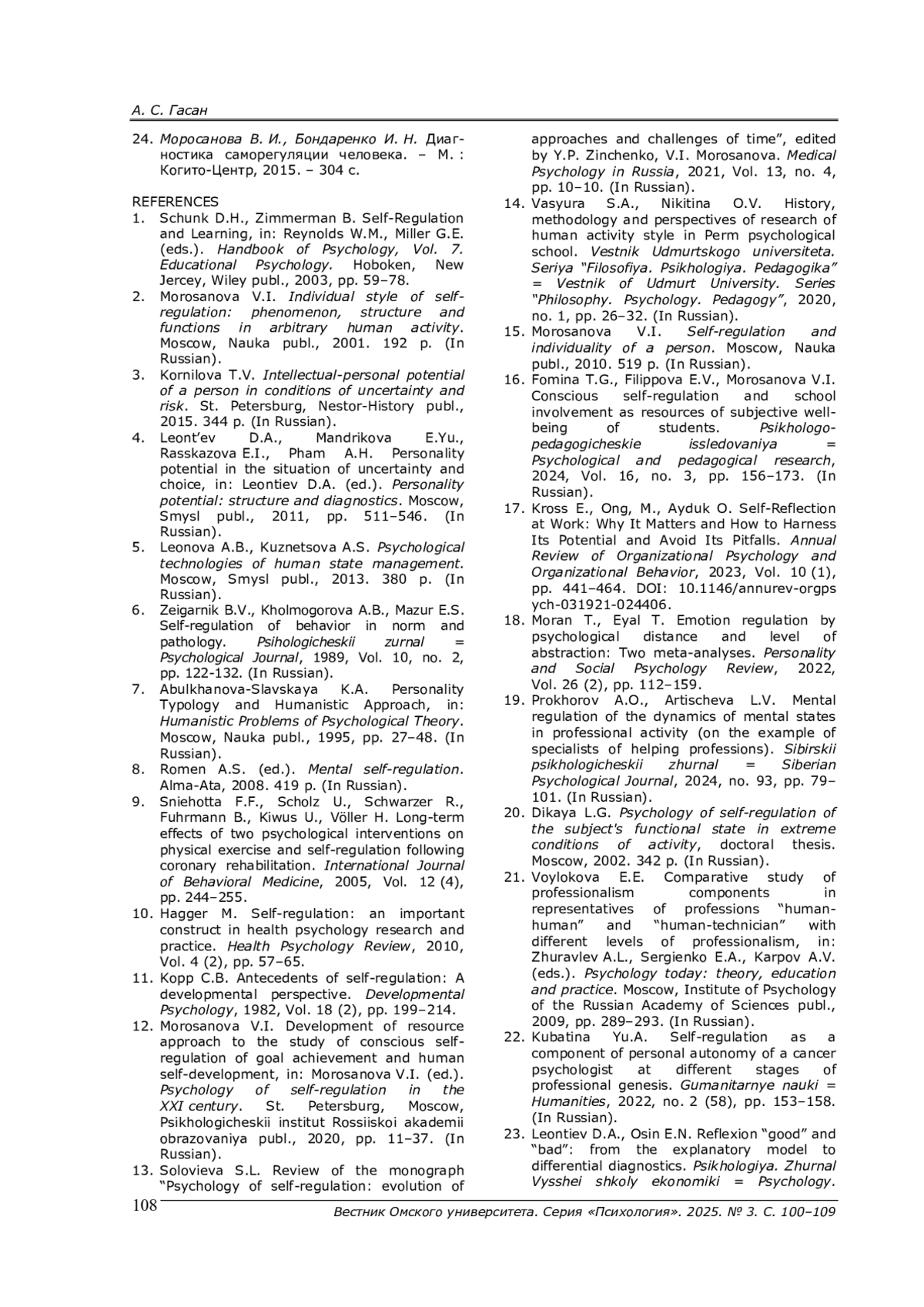24. Моросанова В. И., Бондаренко И. Н. Диагностика саморегуляции человека. - М.: Когито-Центр, 2015. - 304 с. EDN: WMPZKP