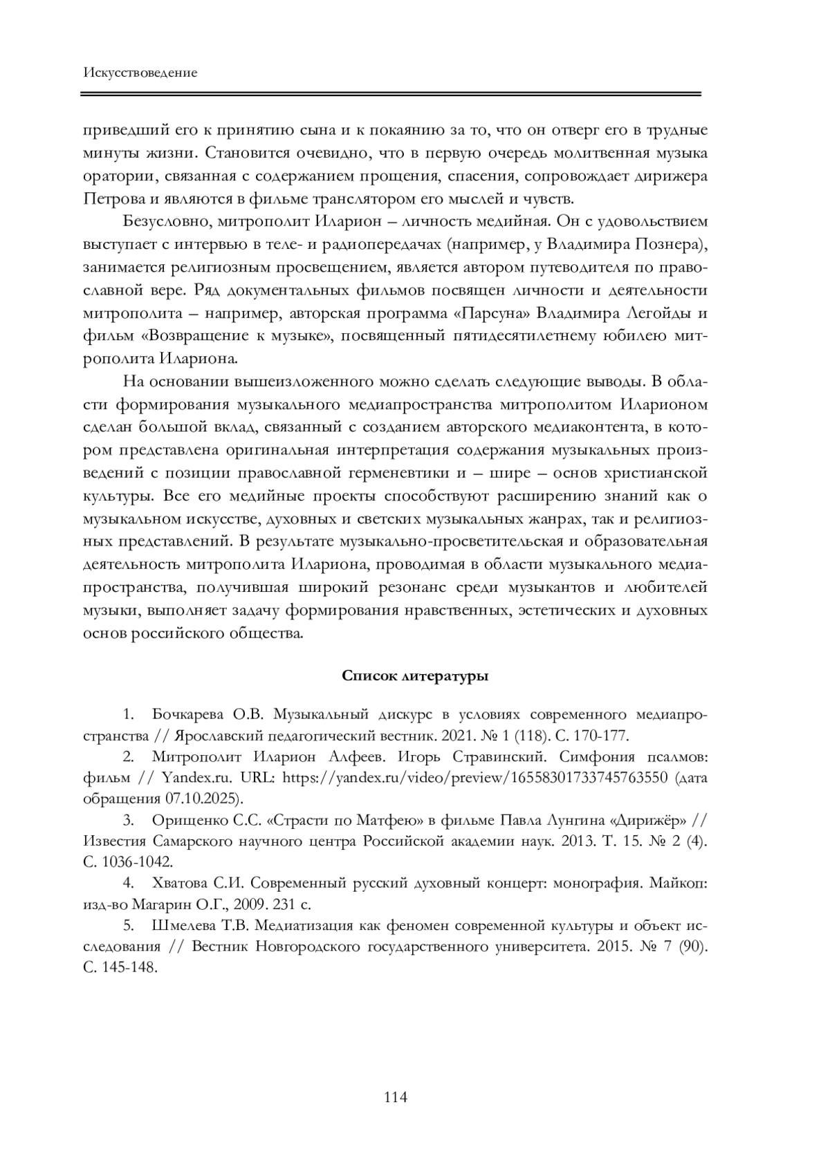 2. Митрополит Иларион Алфеев. Игорь Стравинский. Симфония псалмов: Бочкарева О.В. Музыкальный дискурс в условиях современного медиапро фильм // Yandex.ru. URL: https://yandex.ru/video/preview/16558301733745763550 (дата обращения 07.10.2025).